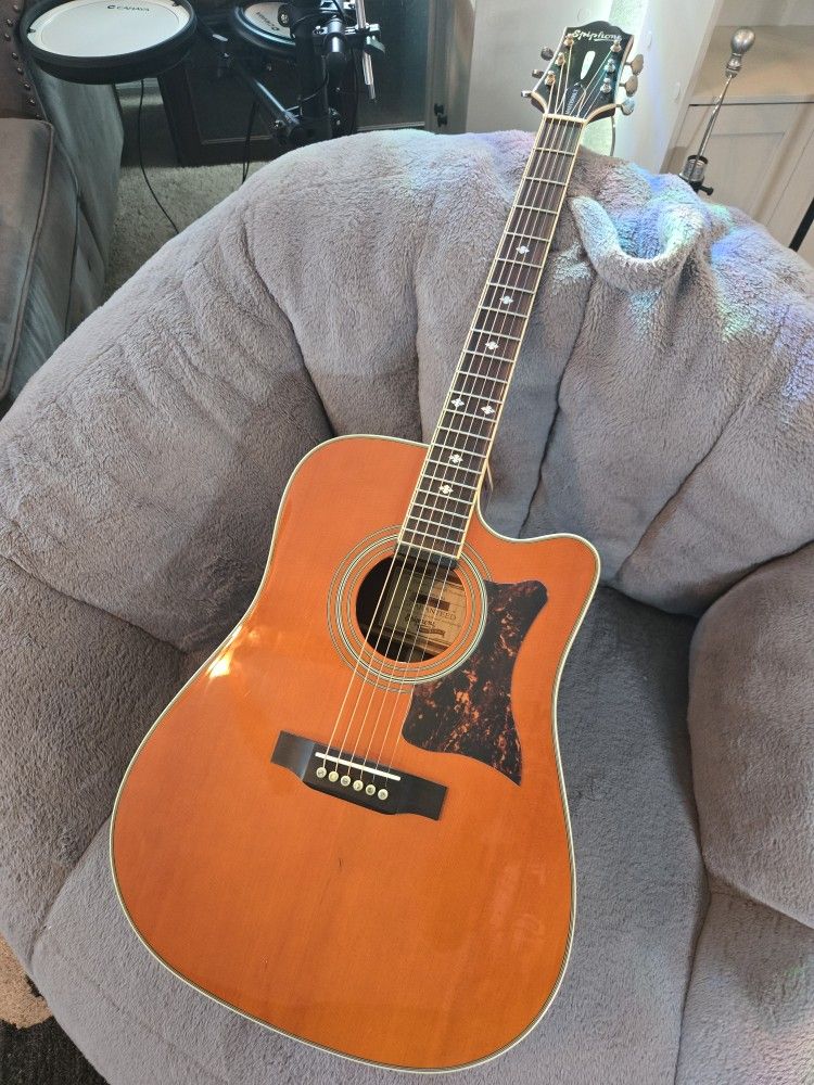 Epiphone Masterbuilt DR-500MCE All Solid Wood Acoustic Electric Guitar. Full Solid Wood Construction Solid Spruce top Solid Mahogany back and sides Mono and Stereo Output with Fishman Presys preamp and Sonicore pickup system The guitar has some small dings, but plays beautifully and sounds amazing unplugged or amplified. Asking $450, located near Gantzel and Combs in San Tan Valley.