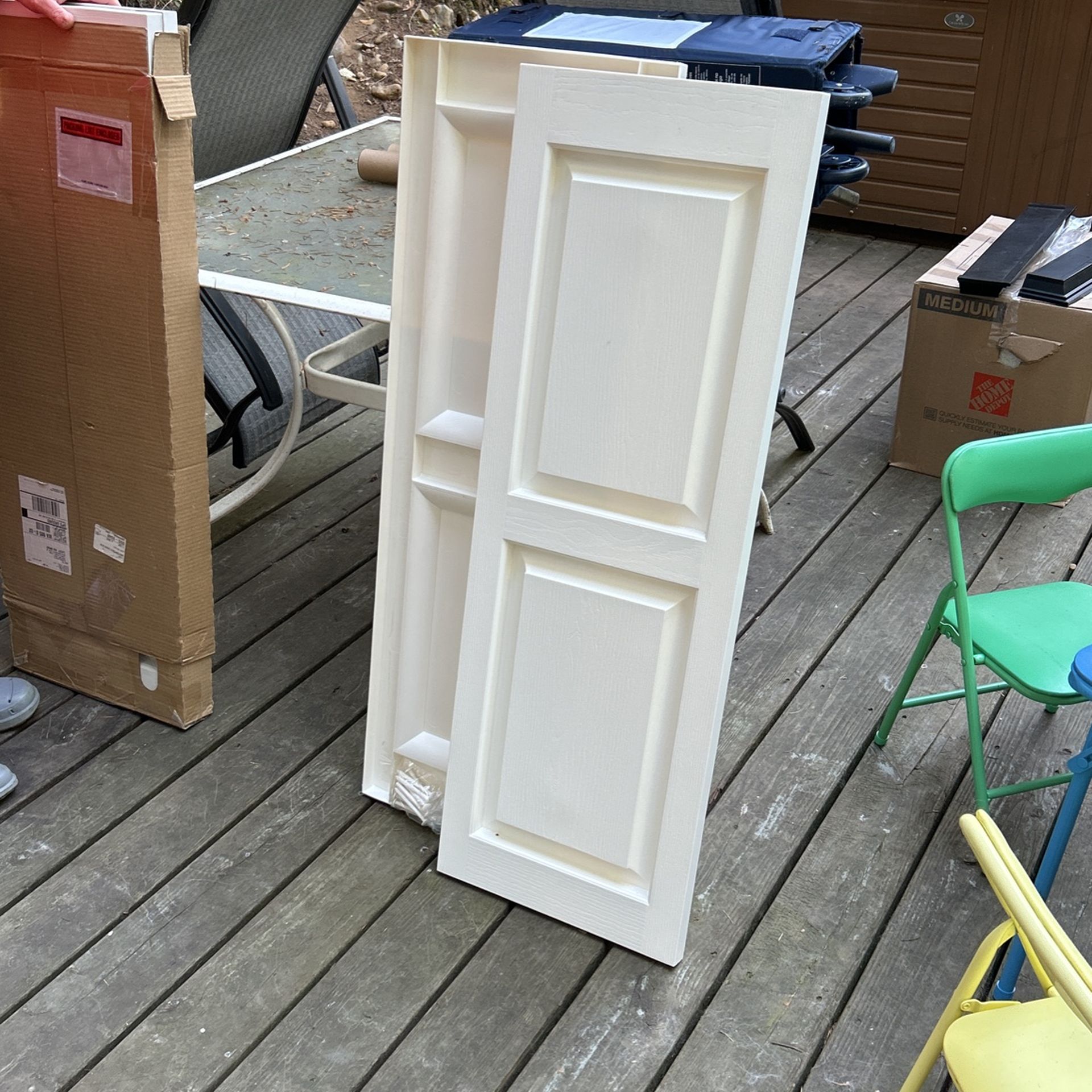 Mondern farmhouse window shutters. 14 1/2" wide by 42 1/2 tall I have 2 sets of these.
