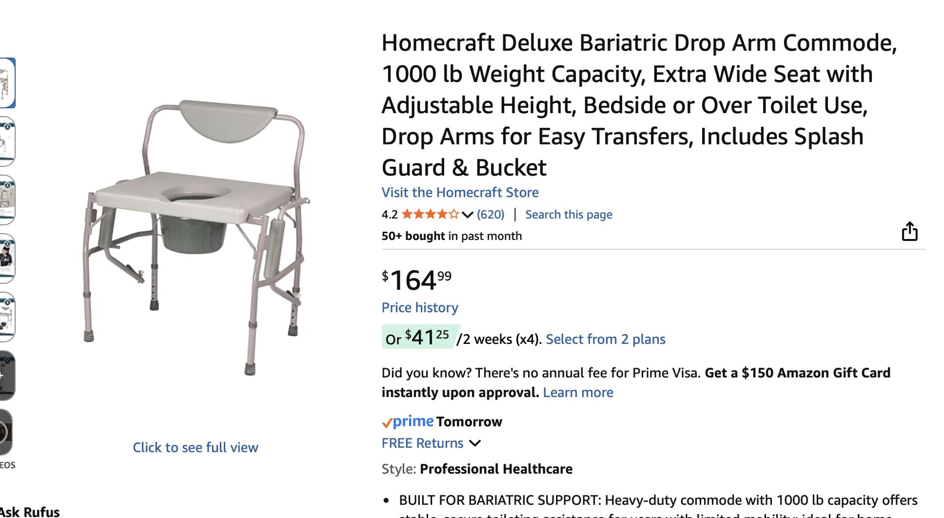 Bariatric Drop Arm Commode, 1000 lb Weight Capacity