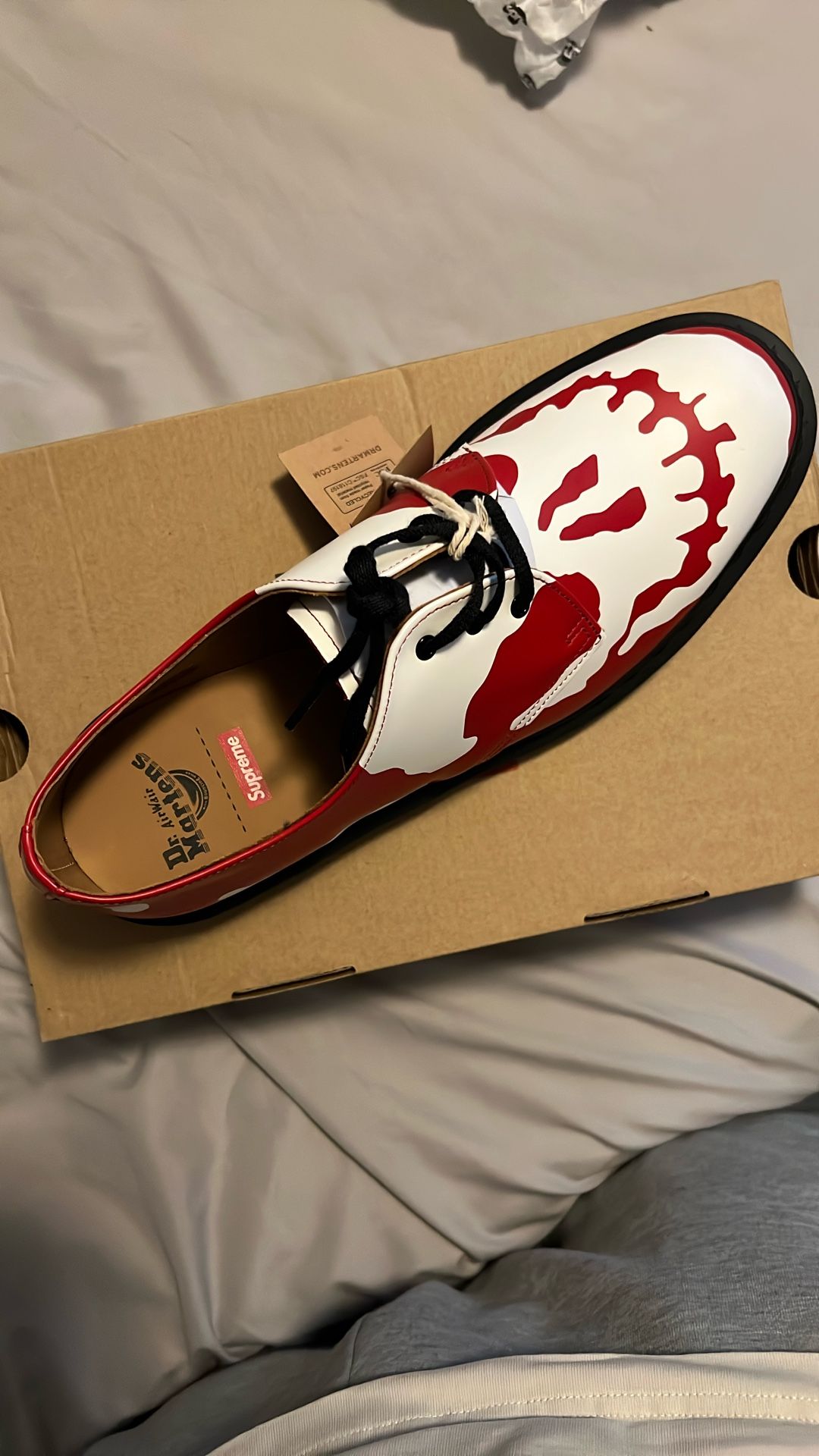 Great collab super limited release! Official supreme collab size 11 men’s in the red and white skull.