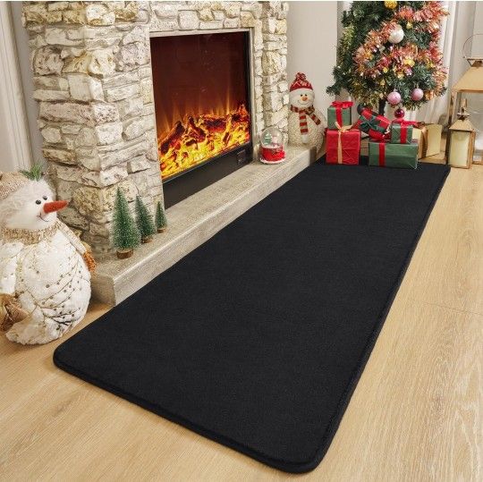 Amearea Modern Soft Hallway Runner Rug, 2x6 Feet Washable Runner Rugs for Hallway, Black Fluffy Rug Bedroom Bedside Rugs, Non Slip Memory Foam Rug Car
