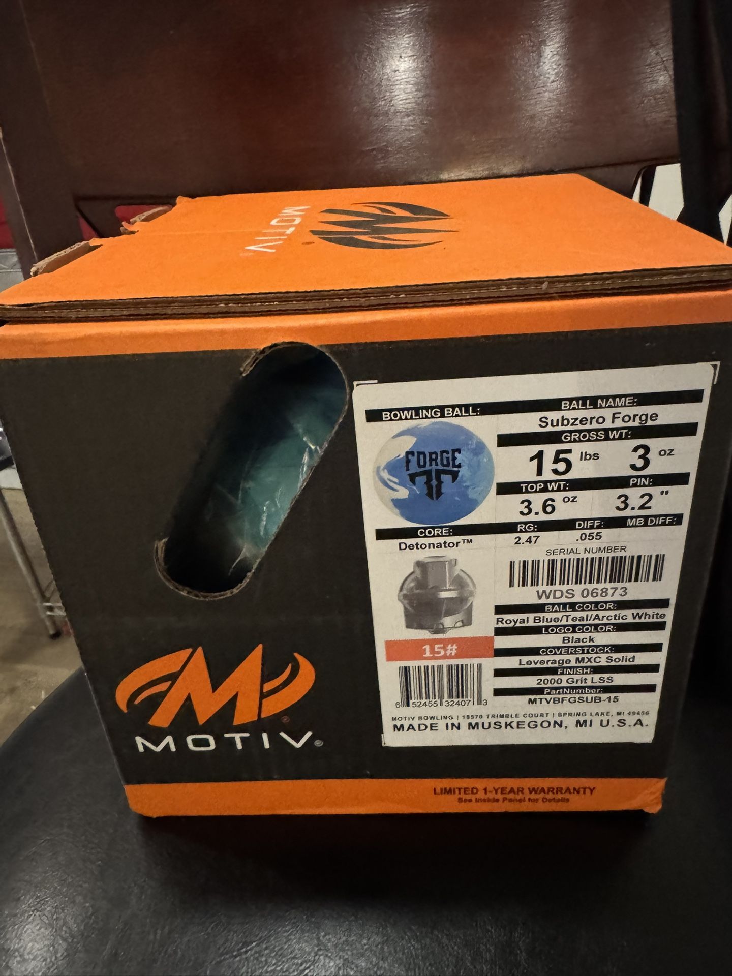 Ball is Undrilled. Never got around to drilling it, and moving on from the few Motiv products I have. Price not firm. Firm only if shipping with the cost of shipping