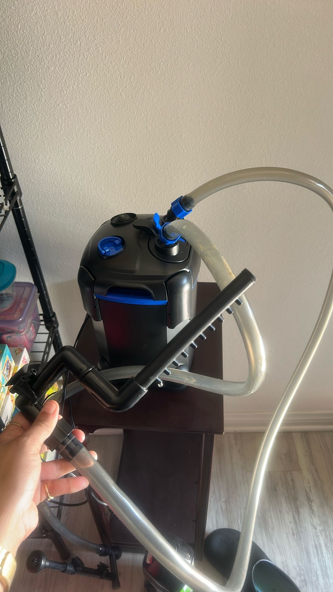 Aquarium filter (I used in a turtle tank) less than a year old perfect condition comes with the tubing and suction cups and insulation pieces … can be used in a tank up to 50 gallons I also have the instructions for it. Very simple to take apart and put together.