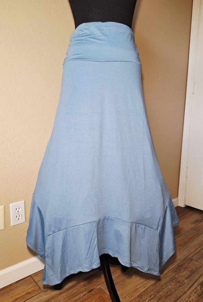 New with tag DOUBLJU Gypsy Pixie Renaissance Medieval Gothic Pirate Peasent Fairy Cosplay Casual Skirt Size Medium see size chart pic for measurements. Country Blue buttery soft Asymmetrical Scarf cut skirt. Light flowing breathable fabric. Midi length. 35th ave and Deer Valley