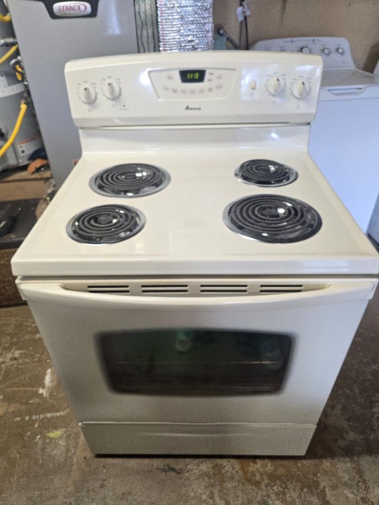 In excellent working and clean condition Amana beige stove. Everything works perfectly fine. Very clean. CASH ONLY PLEASE.