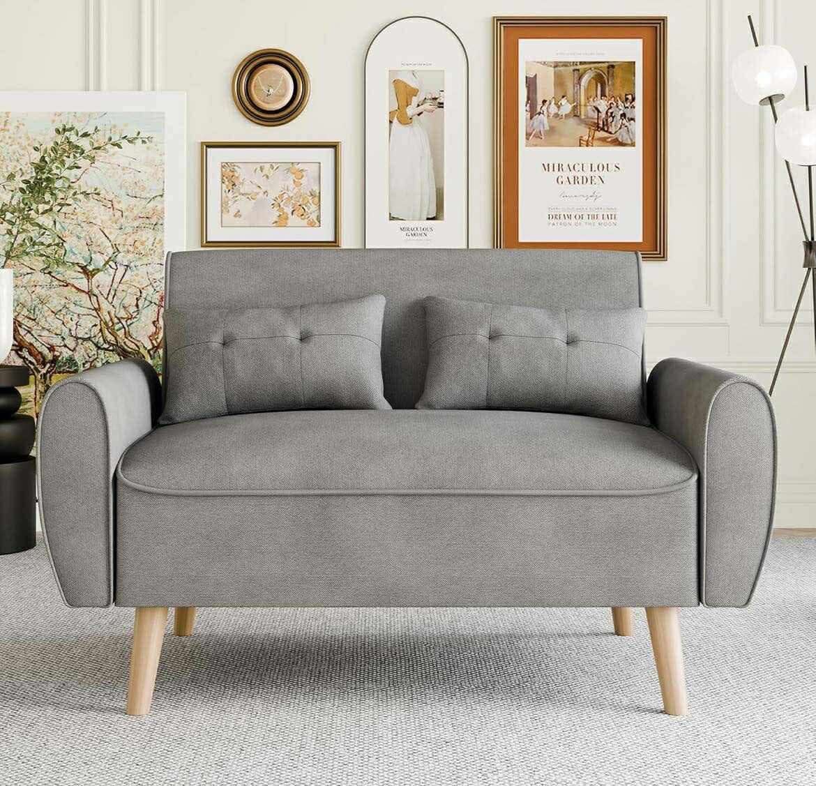 Vongrasig 47" Small Modern Loveseat Sofa, Mid Century Linen Fabric 2-Seat Sofa Couch Tufted Love Seat with Back Cushions and Tapered Legs for Living Room, Bedroom and Small Space (Light Gray)