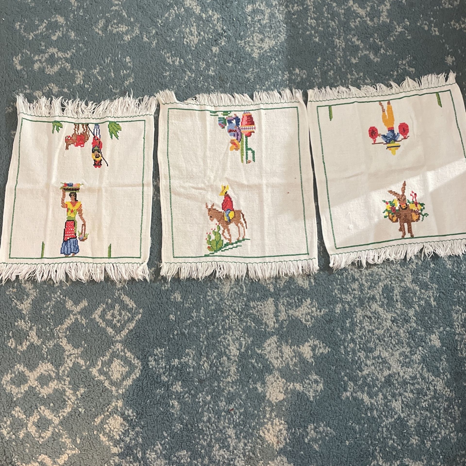 Hand stitched Mexican style napkins, used, some stained. All three for $10