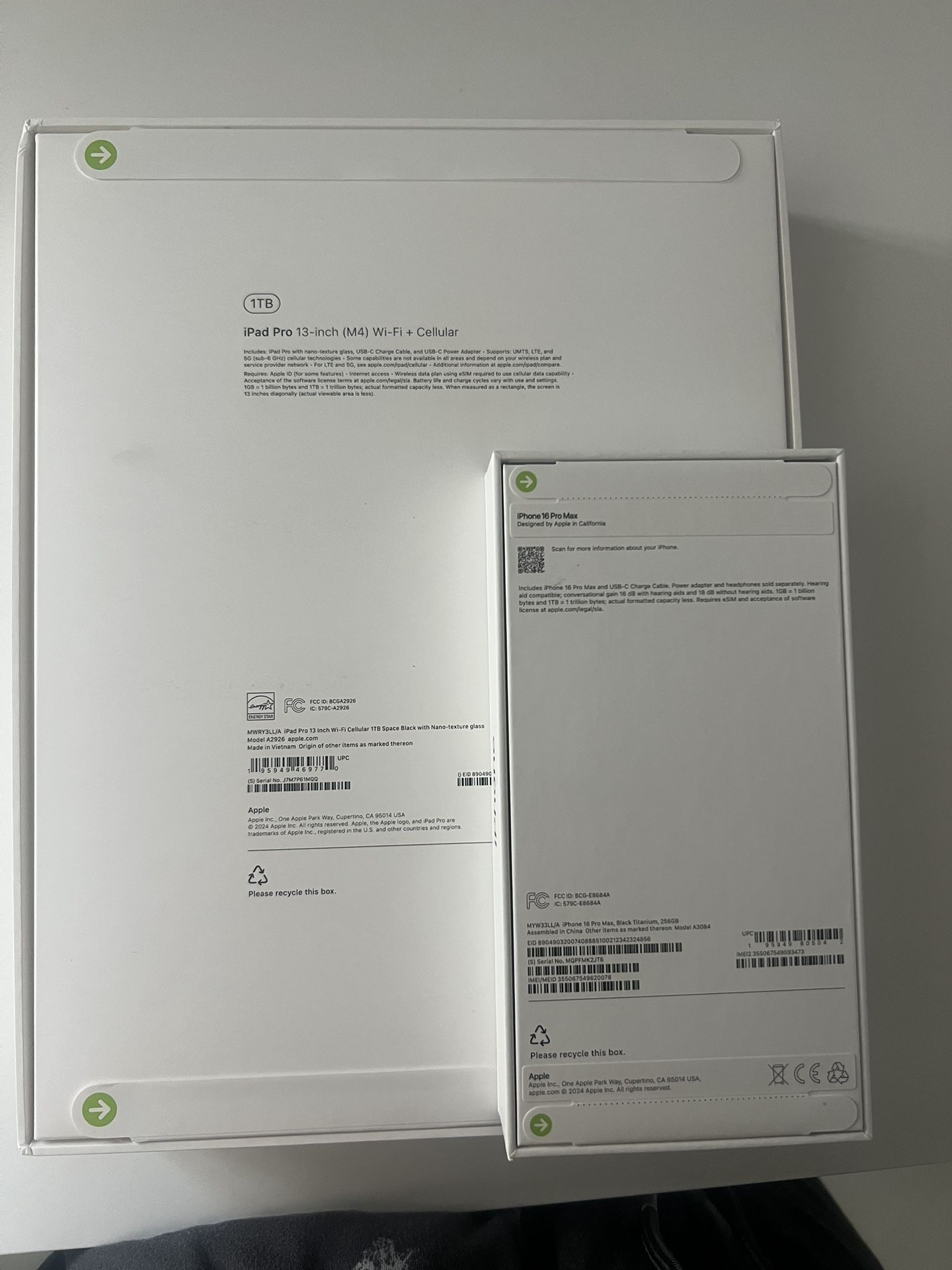iPad Pro 13 Inch M4 Wifi Cellular 1tb with nano texture Glass iPhone 16 pro Max 256 att both New sealed never use it