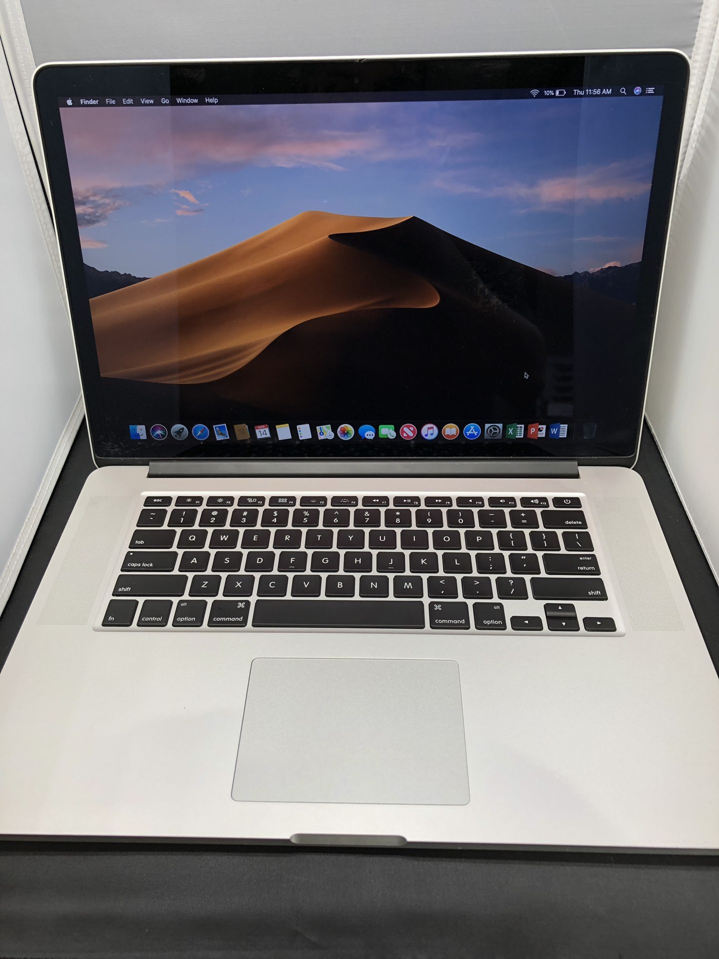 Apple MacBook Pro retina 15 inch 2013 -8gb ram -256ssd -2.4ghz i7 -Mac OS Mojave’s ++++ ADOBE PHOTOSHOP , Final Cut Pro , logic ,main stage, lig