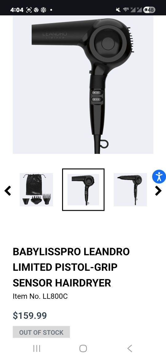 Babybliss pro Leandro Limited pistol grip dual sensor hairdryer originally $159 has a 9ft cord that has been repaired but does not effect functionality. Has been tested.Make offer