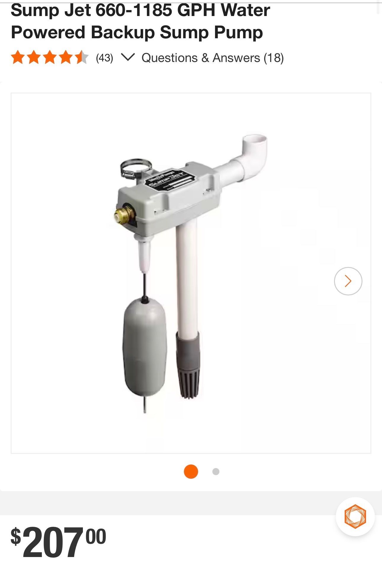 Sump Jet (contact info removed) GPH Water Powered Backup Sump Pump $100