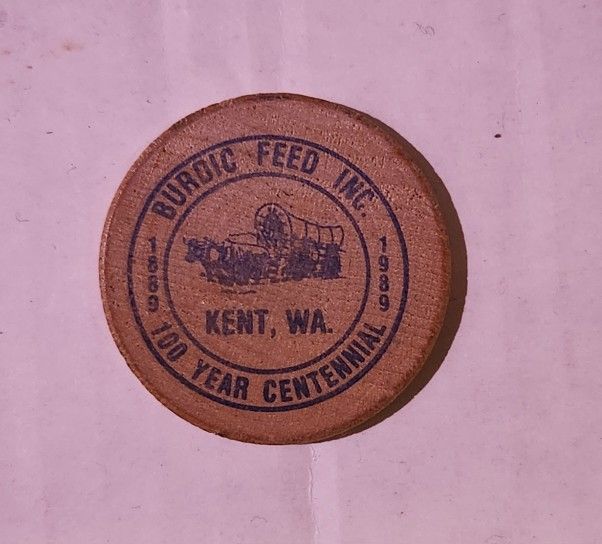 Vintage BURDIC FEED INC. Advertisement Wooden Nickel 1989 Kent, Washington 100 Year Centennial In fair condition, see photos. $9 or best offer, please don't hesitate. You won't hurt my feelings with a low price. Discount of at least 10% if you buy more than one posted item. Will meet in Kent, Auburn or Renton Valley Area. Mailing, we use recycled mailing materials and we don't mail on Saturday, Sunday or holidays. Any questions or concerns please message through OfferUp. Thanks BX26