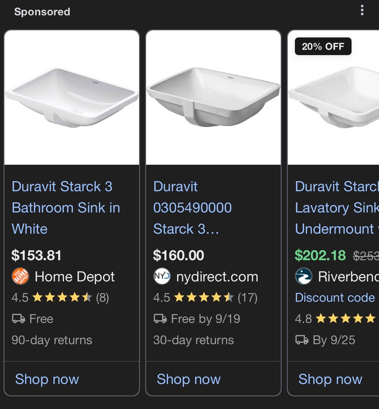 I have two Duravit Starck 3 sinks that don’t fit in my bathroom vanity. Bought these over a year ago and can’t return. Asking 100 each or best offer.