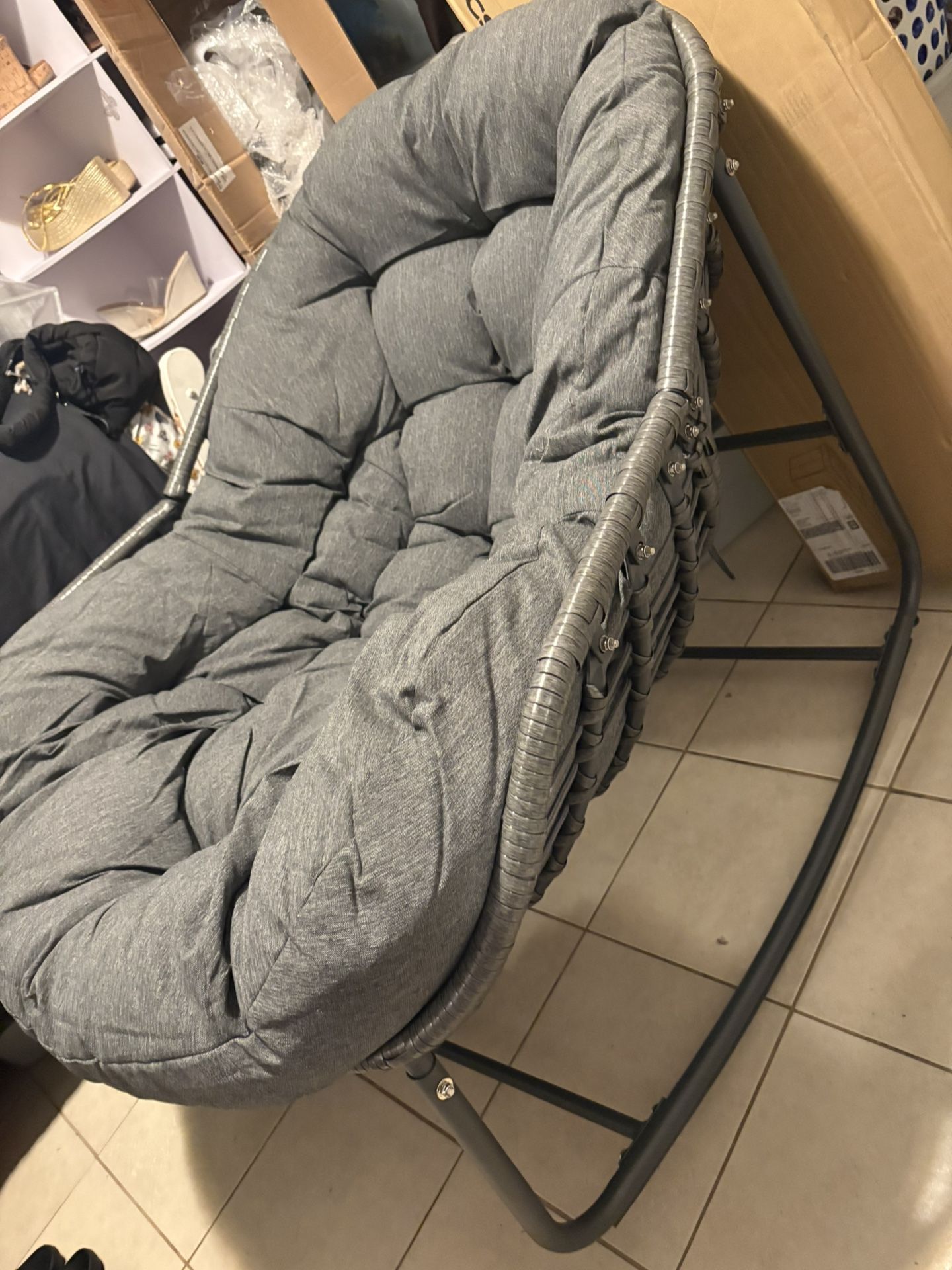 I didn’t pay attention to the measurements when I ordered this chair. I love it , the only thing is .. I don’t have space for it . Please send me your offers . I need it gone. I put it together and threw the box out so I can’t mail it back. For reference, I’m 5’6 and weigh 166 and I can cuddle in there perfectly with enough space to spare . Truly sad to let this go.