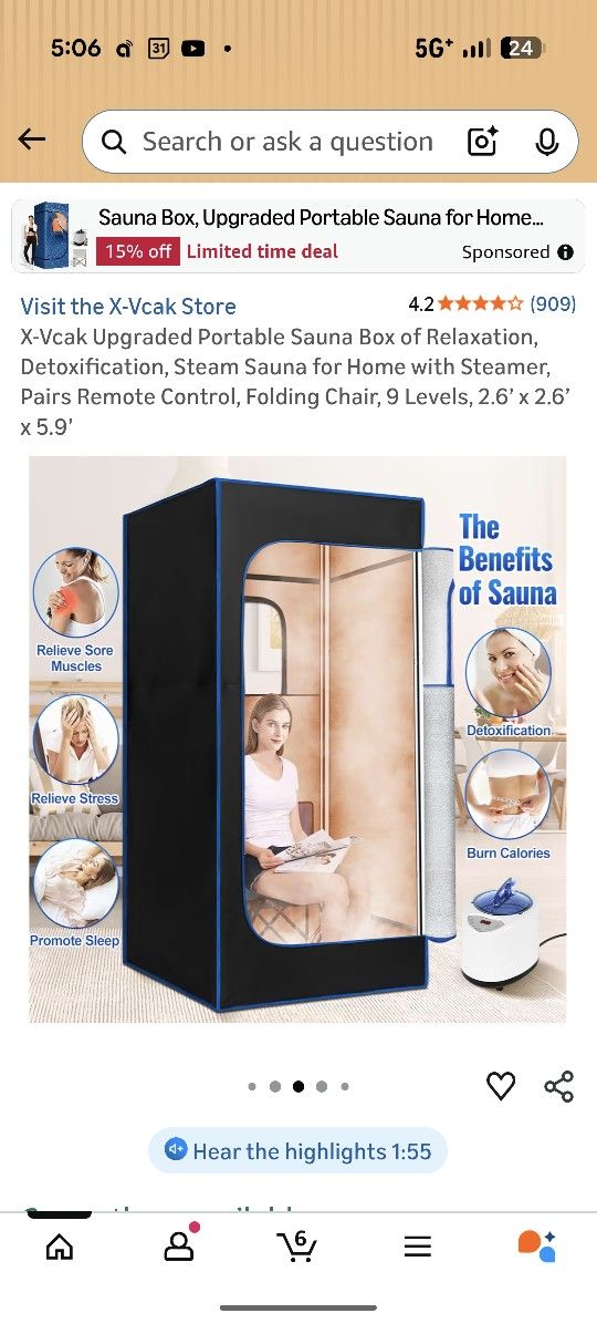 X-Vcak Upgraded Portable Sauna Box of Relaxation, Detoxification, Steam Sauna for Home with Steamer, Pairs Remote Control, Folding Chair, 9 Levels, 2.6' x 2.6' x 5.9' Not tested but everything looks brand new in package