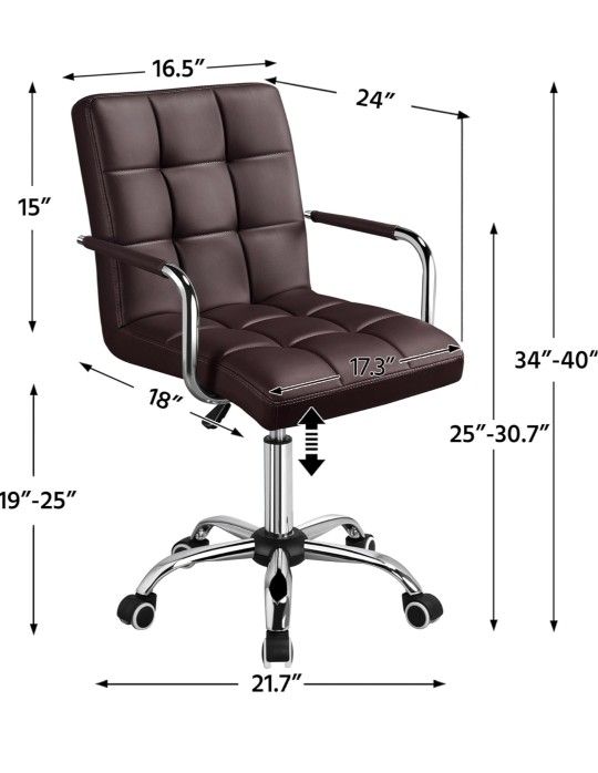PU Leather Mid-Back Task Desk Chair Modern Adjustable Swivel Home Office Chair with Smooth Casters