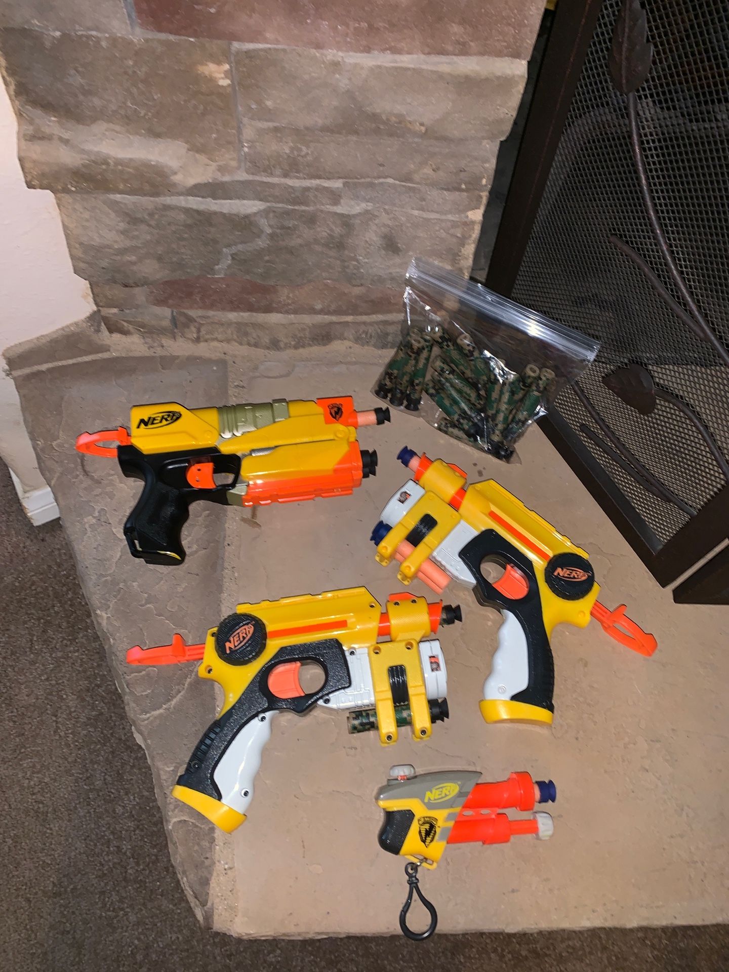 (2) Nerf Pullback Pistol with Lasers, (1) S.S. AS-1, (1) Switch Shot EX-3, All fully loaded with an additional 13 bullets Tested and working (Unsure if lasers work) we have a wide variety of Nerf guns for sale. We will discount if multiples are purchased. Please see my account for more Nerf guns.