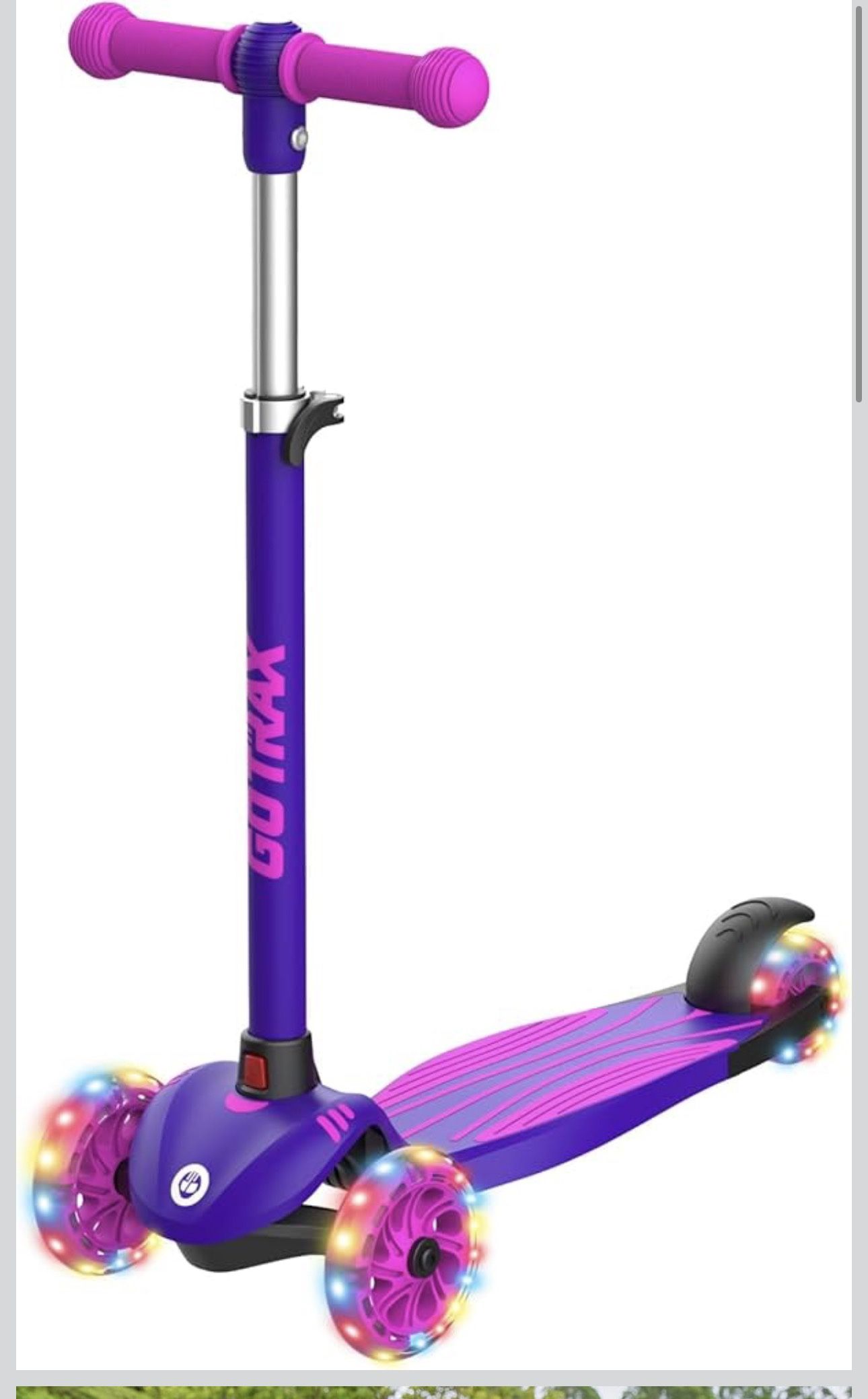 Kids Kick Scooter, LED Lighted Wheels and 3 Adjustable Height Handlebars, Lean-to-Steer & Widen Anti-Slip Deck, 3 Wheel Scooter for Boys & Girls Ages 2-8 and up to 110 Lbs