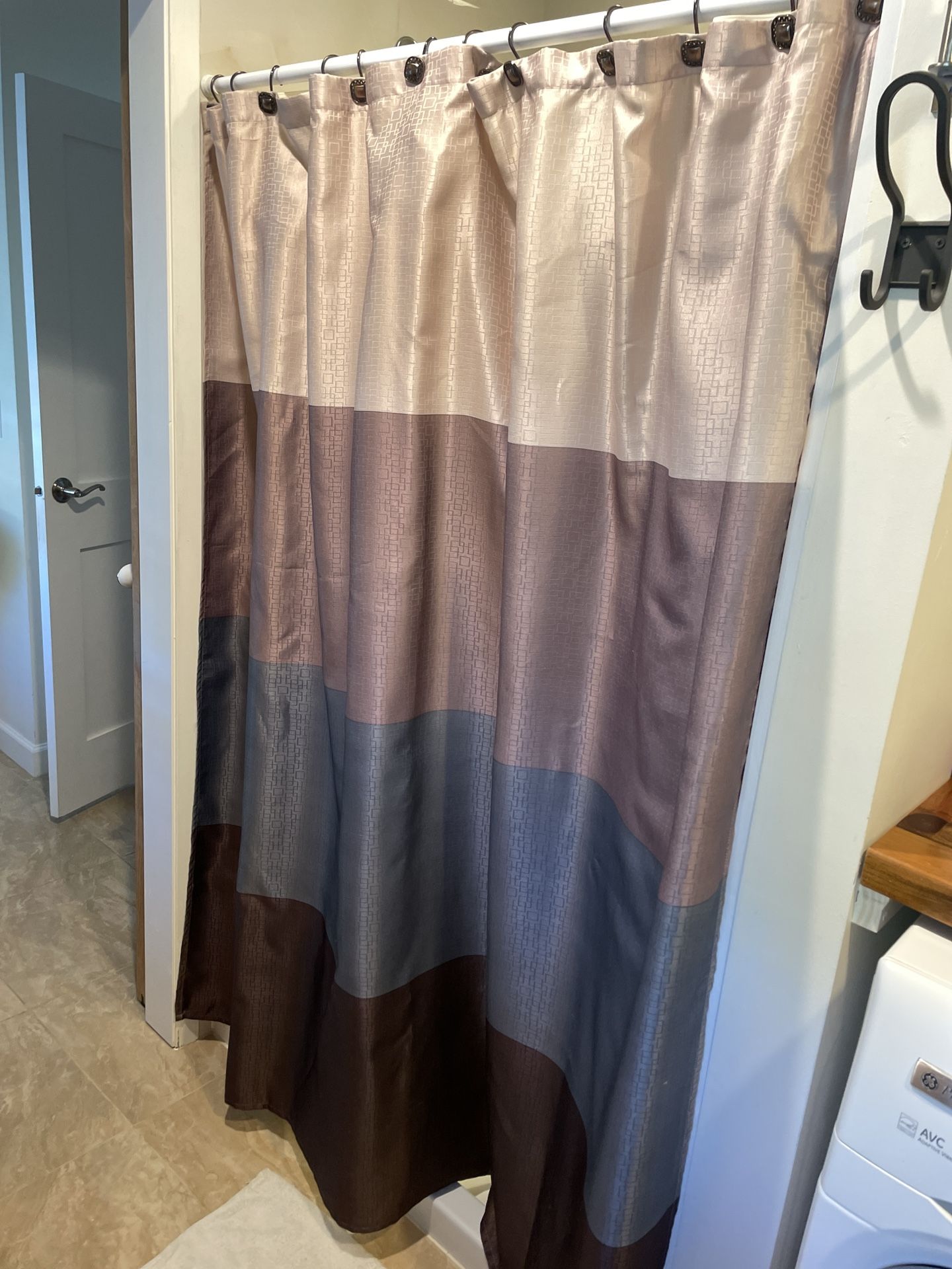 Contemporary Shower Curtain w/ Liner And hooks, Like New