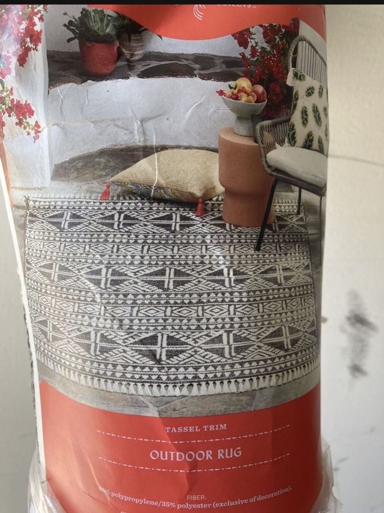 5ft X 7ft Opalhouse Tassel Trim Outdoor Rug Charcoal White Geometric Pattern!!