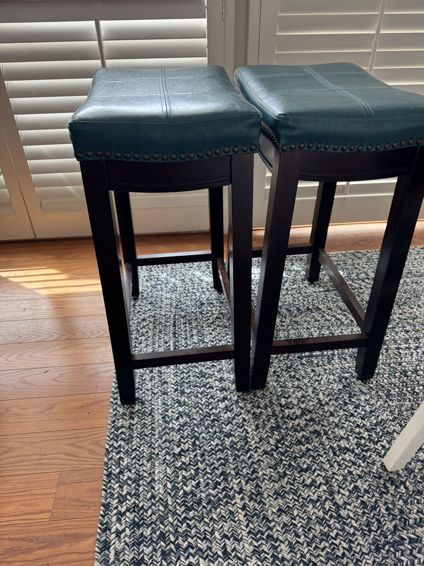 New bar stools, cobalt colored seats, wood base. Fits all standard bar heights. Never used look brand new!! Will sell both for $30.00!!!