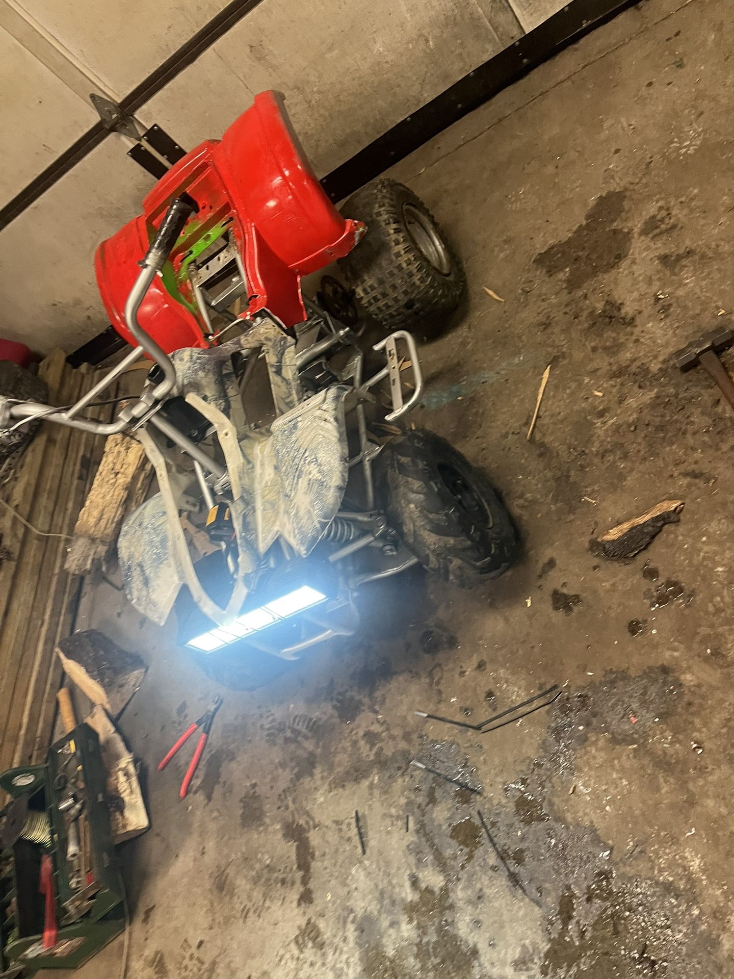 Needs a motor and a motor mount does not come with spotlight just a frame and plastics and I have a 125 cc frame that’s taking apart