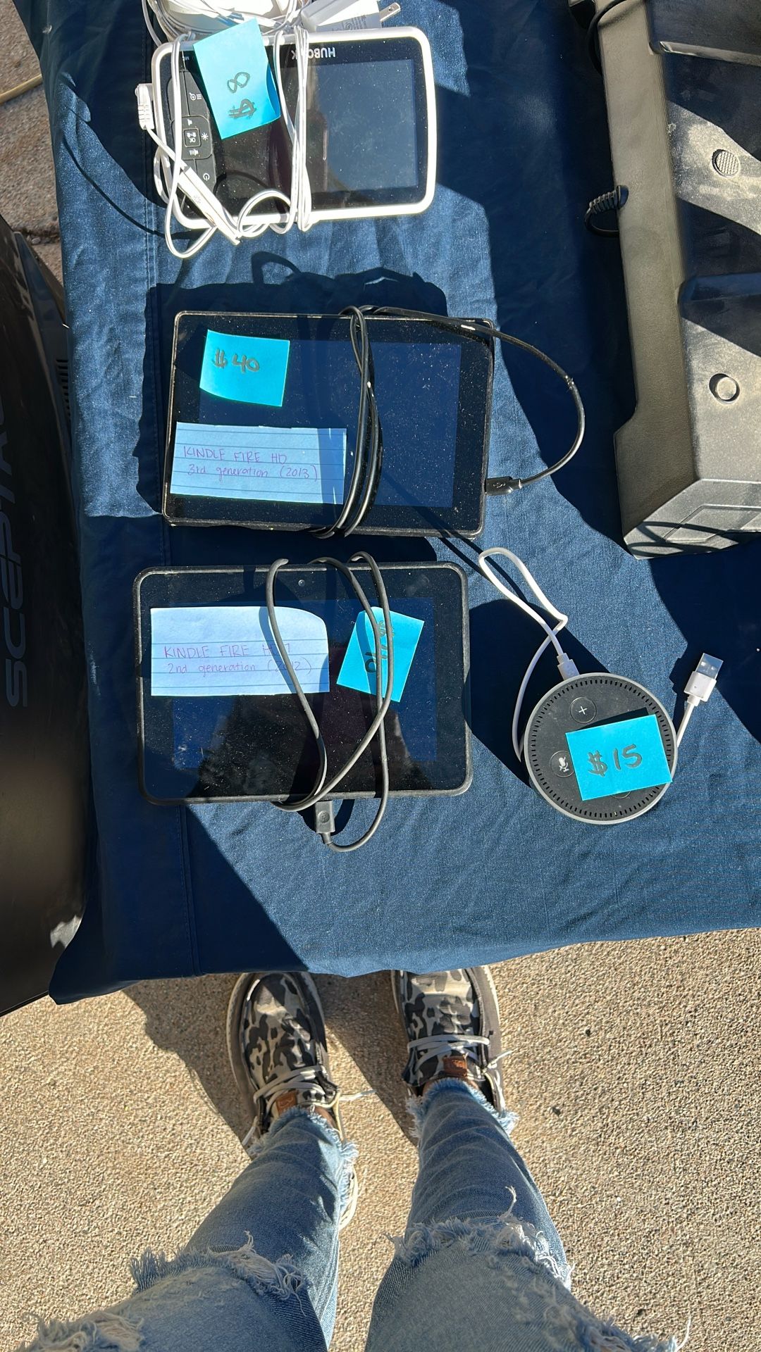 7 in kindle fire HD $40 3rd gen 7 in kindle fire HD 7 $40 Both work no longer use Amazon Alexa echo dot $15 I upgraded to echo show no longer need dot $70 for all