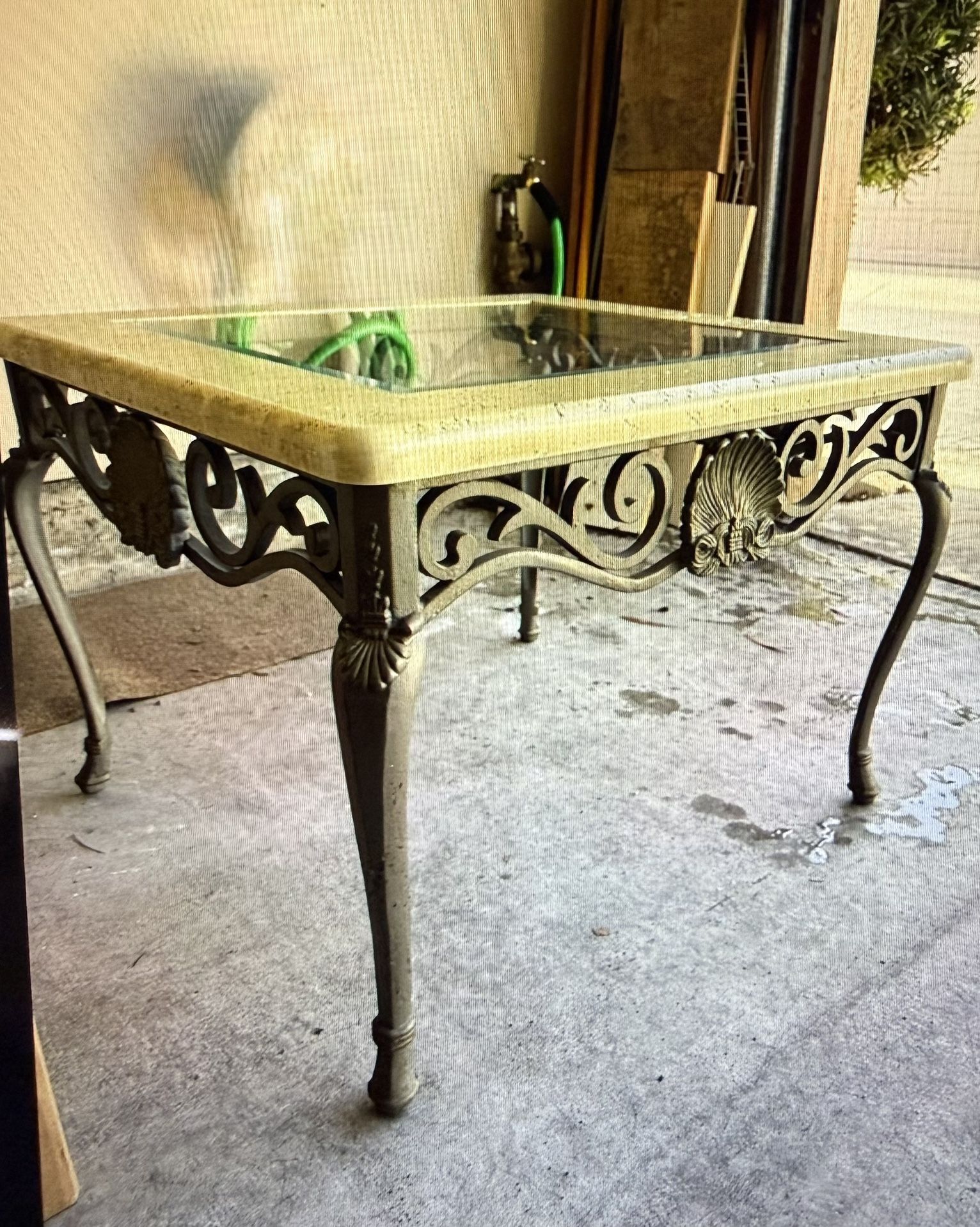 This table is 27” x 25” and about 21” tall. Normal wear and tear… good for patio? It came as a set and I use other piece for plant stand ..