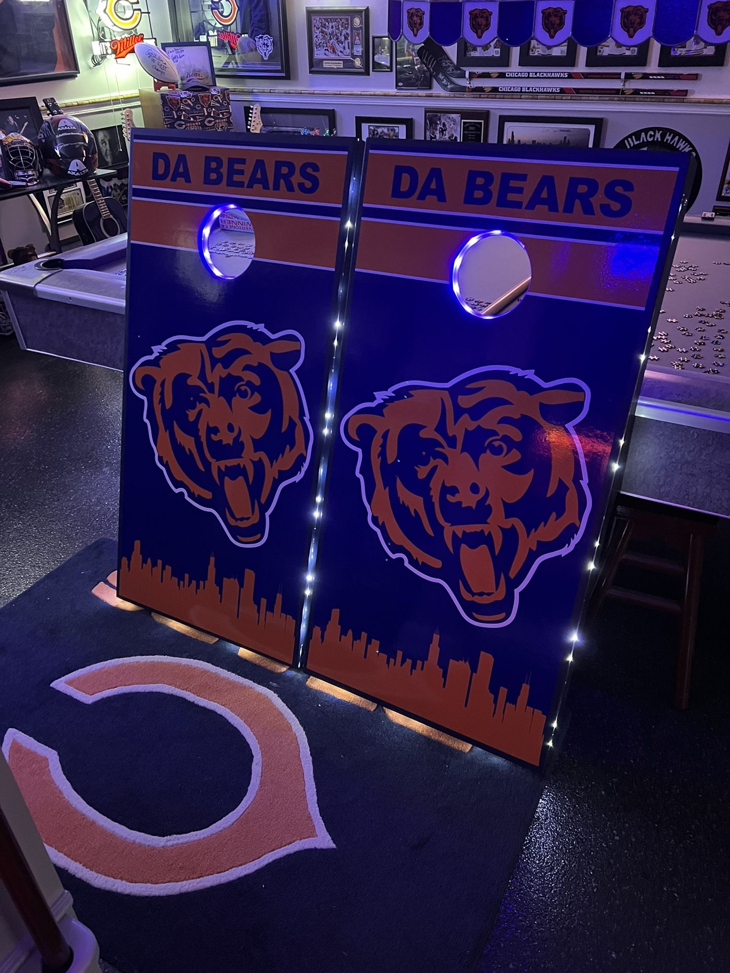 Cornhole boards come with Led Lights in the hole and around the outside.Also comes with bags