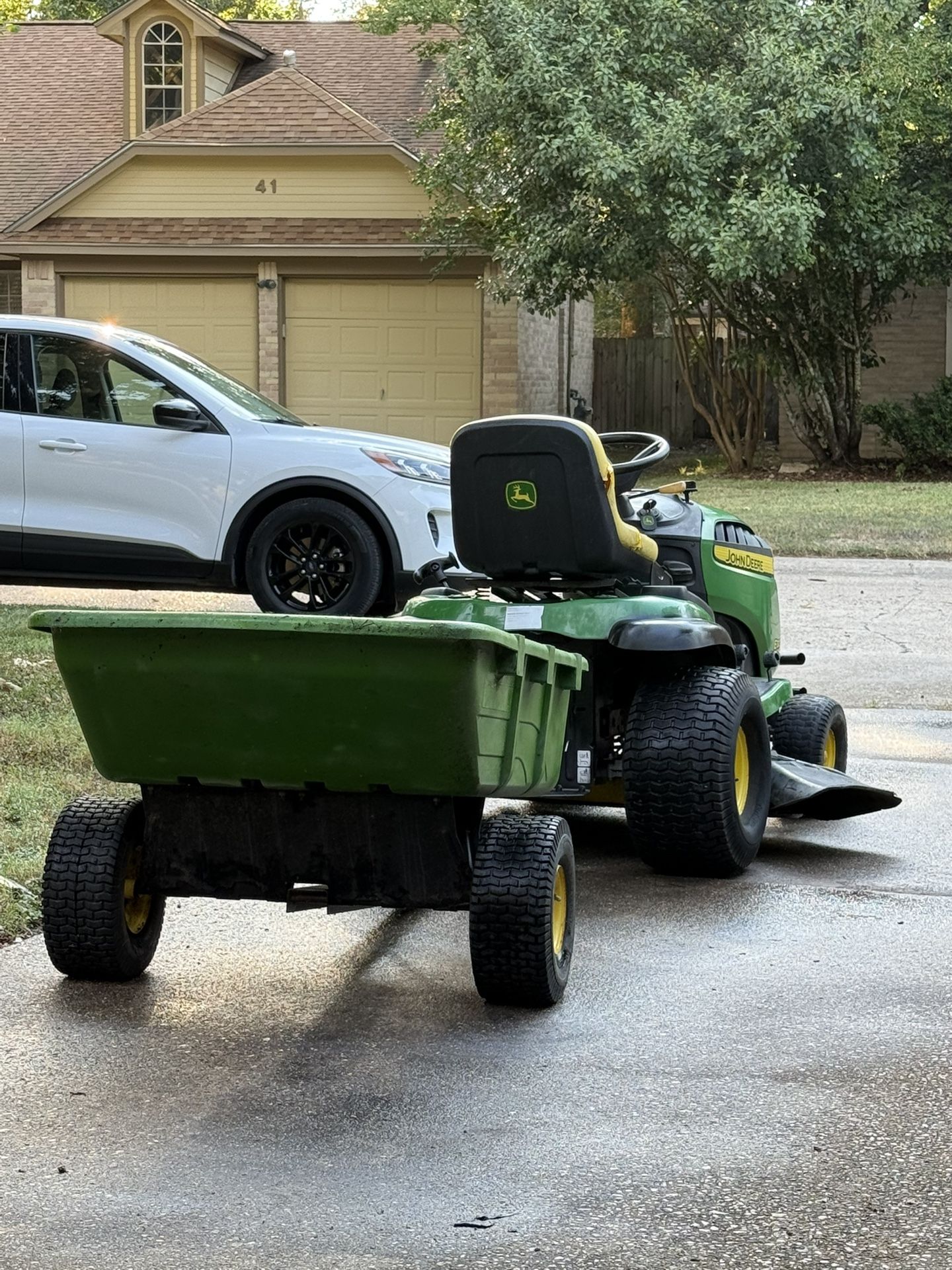 Tiltable dump cart for your tractor mower. Used, functions, just don't need it