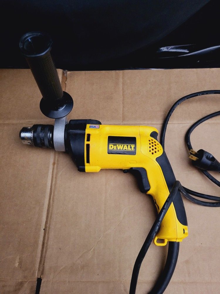 used couple times Works great. Dewalt 7.8 Amp Corded 1/2 in. Variable Speed Reversible Hammer Drill 2700 RPM max speed for powerful performance 8 ft. cord for increased jobsite maneuverability Great for wood, steel and masonry applications The DEWALT 1/2 in. Variable Speed Reversible Hammer Drill features a high-performance 7.8 Amp motor that provides overload protection. This dual-mode hammer drill is ideal for wood, steel and masonry applications and offers a 360 Degree side handle with depth rod to help deliver great control, versatility and depth accuracy. This hammer drill has a lightweight design to help limit user fatigue, as well as a 2-finger rubber trigger for comfort. 186 tru