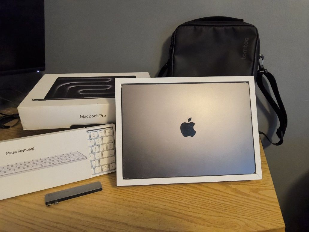 Selling my Space Black 14-inch MacBook Pro (M3 Pro Chip). This machine is a monster. Only laptop I've ever owned that has never let me down, missed a beat, or even a slightly frustrating issue. I am only selling it because I am moving across the country for a new job that requires (and provides thankfully) a PC. Why you want this one: Most used MacBooks are a risk—this one isn't. It comes with Prepaid AppleCare+ active through March 2027. This is fully transferable to you, giving you total peace of mind for the next ~15 months. SPECS (Model MRX33LL/A): • Chip: M3 Pro (11-Core CPU, 14-Core GPU) • Memory: 18GB Unified RAM (Handles heavy multitasking easily) • Storage: 512GB SSD • Battery: Excellent health • Condition: 10/10 Internal, 8.5/10 Cosmetic. Runs perfectly. There are small cosmetic marks on the edges/corners from normal use (see photos), but the screen and performance are flawless. INCLUDES: • MacBook Pro (Factory Reset & iCloud Unlocked) • Original Box • Original Space Black MagSafe 3 Cable Optional Add-ons: I have perfectly curated an accessory devices for this machine (minus mouse - keeping my MX Master 3S!) I have the following available to bundle for a great price - let me know which if any are of interest. I can vouge personally for the three I'm offering (I have a nice tomtoc defender case that fits perfectly as well). • Apple Magic Keyboard • J5create Stand • Satechi USB-C Hub - Dual USBC connection for Macbook Pro TERMS: Cash/Zelle/PayPal. Meet in a public place. You are welcome to test the devices thoroughly before paying.