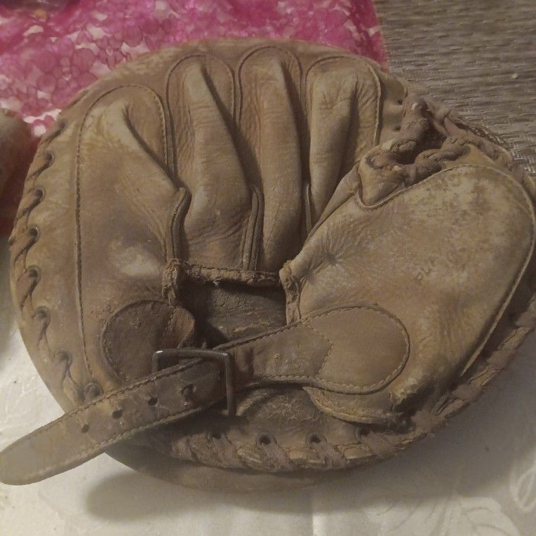 Early 1900s Leather Baseball Catchers Glove Mitt 5 Finger, OK Mfg Co.