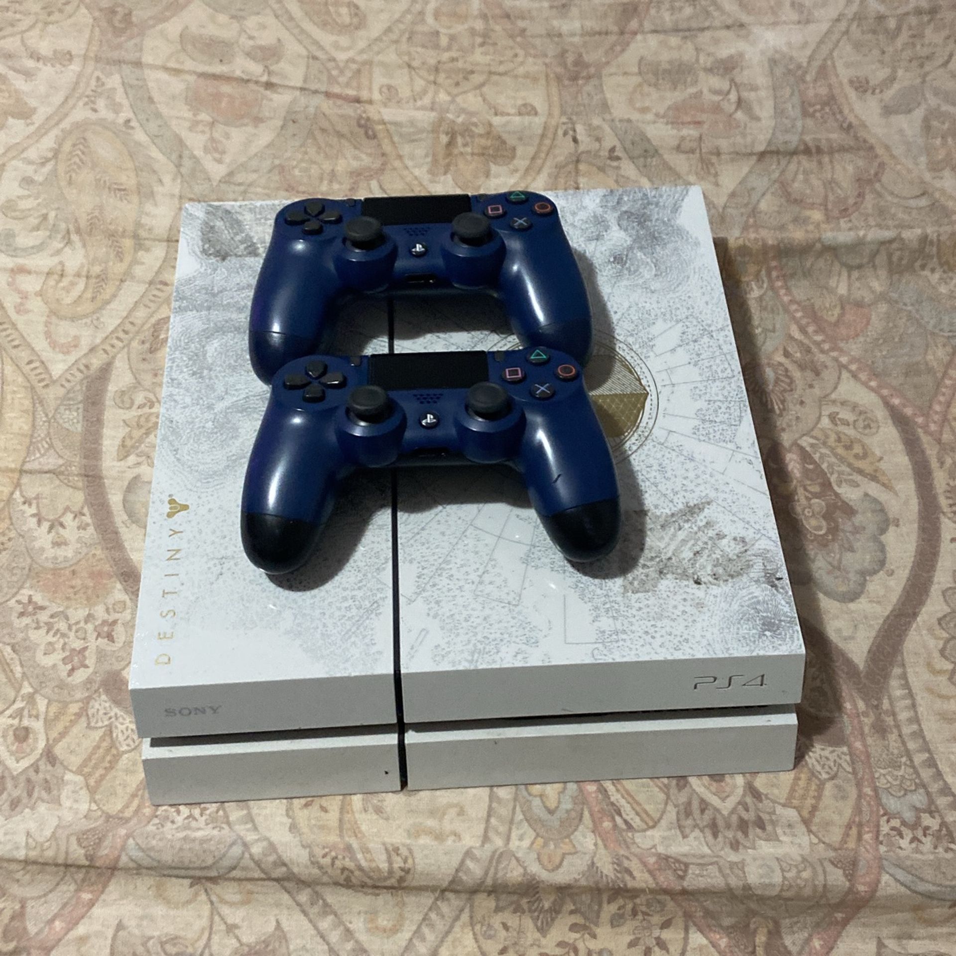 PS4 Perfect Condition 2 Controller Color Of Controllers Is Blue Color Of PS4 Is White and it comes with a ps4 case