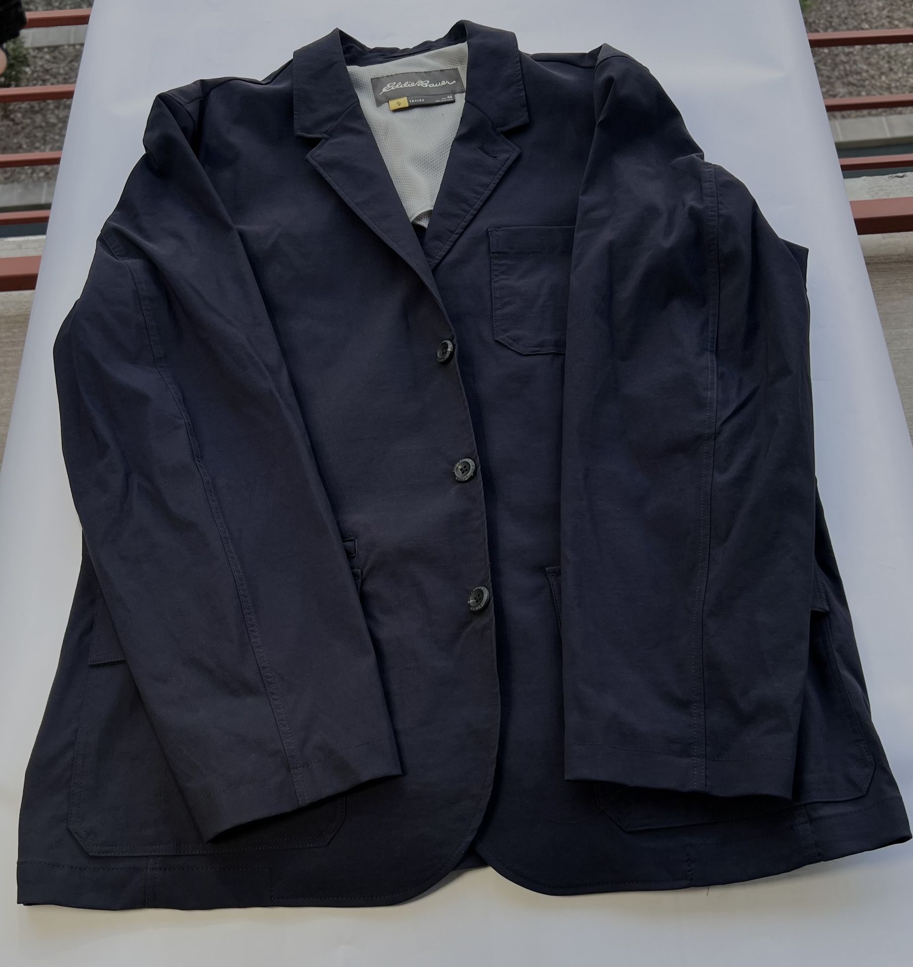 NEW Eddie Bauer TraveX Travel Blazer, Men’s 48, Navy, Stretch Nylon