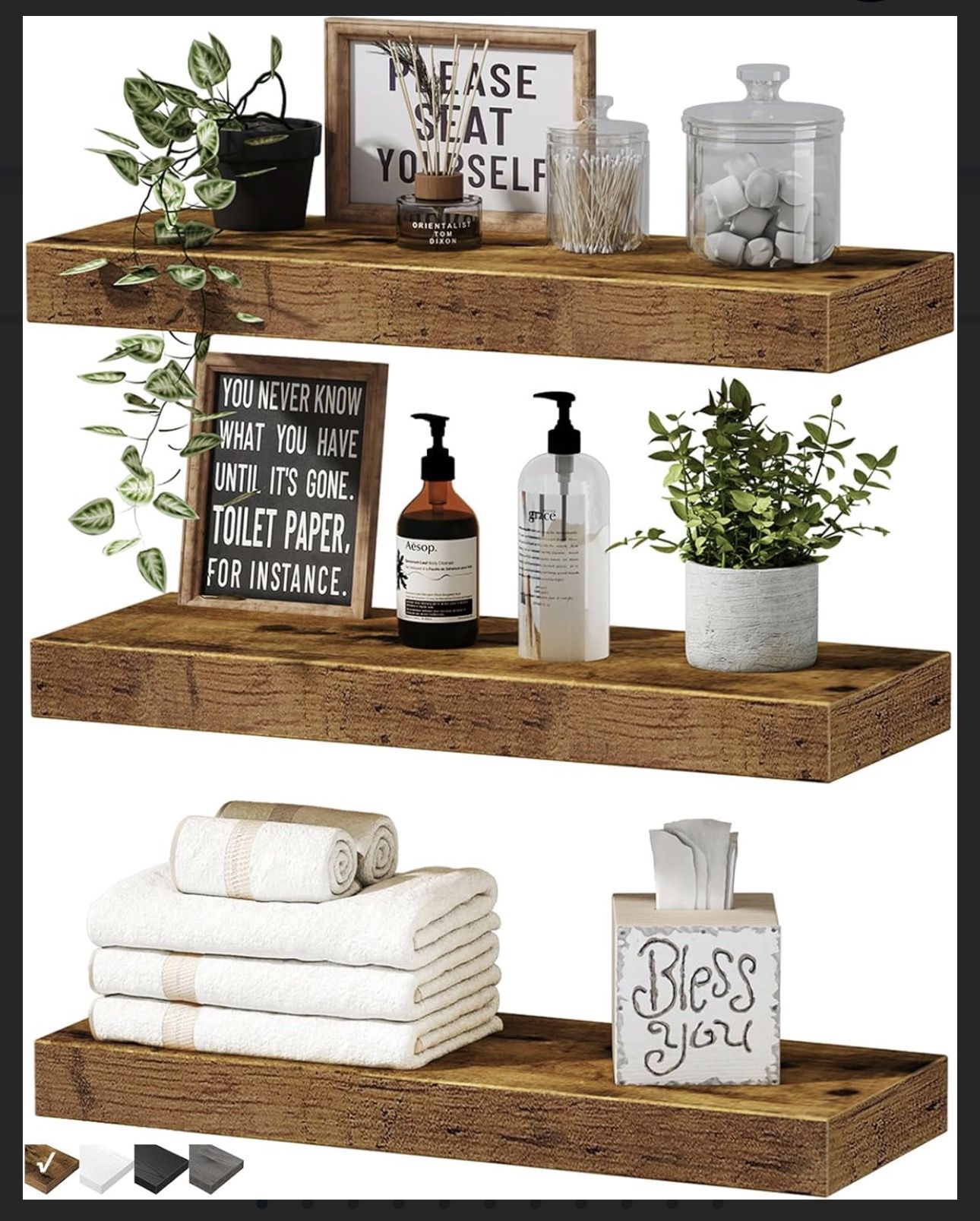 A set of 3- floating shelves, farmhouse decor 16 inch set of three rustic brown - brand new still in original box