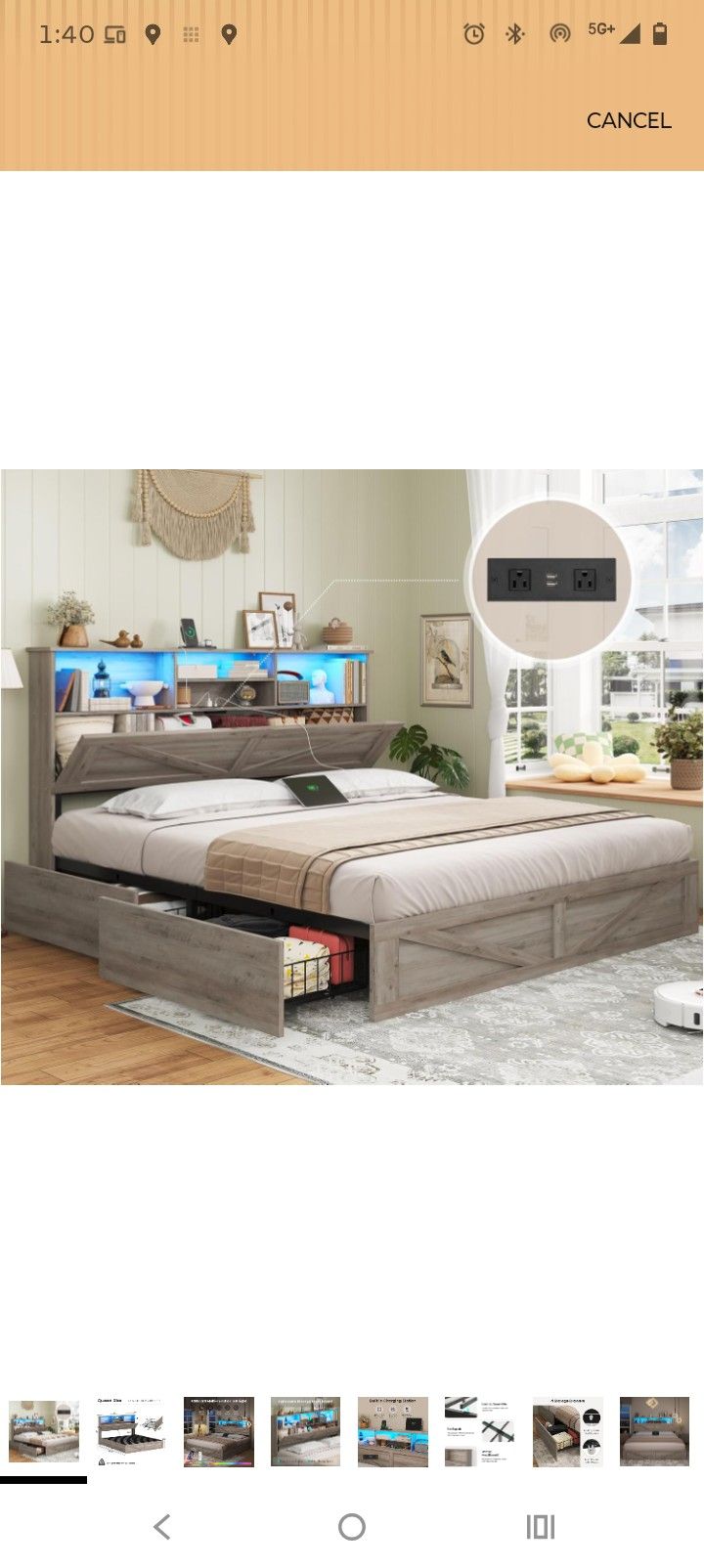 Brand New In Box Modern Farmhouse Style Queen Size Platform Bed With LED Lights Charger Station Drawers And More!!!