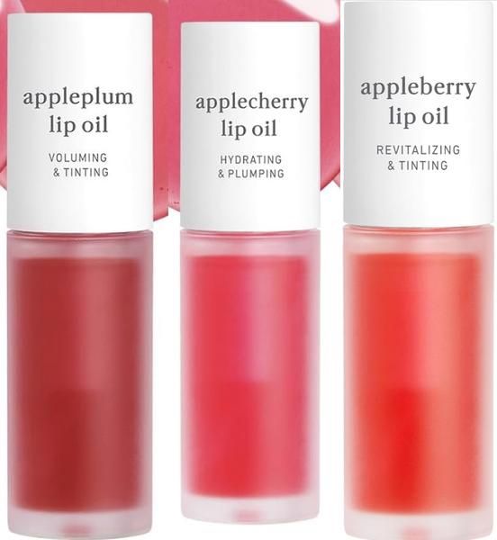 The Nooni Vegan Lip Oil Set includes three different flavors - Apple Seed, Applecherry, Appleplum, and Appleberry, each in a 3.7ml bottle. These lip oils are specifically formulated for dry lips, with a period after opening of 12 months. The vegan-friendly formula is suitable for all skin types and comes in a unisex option. Made in Korea, these lip oils offer a refreshing apple fragrance, providing both hydration and a hint of fruity flavor to the lips.