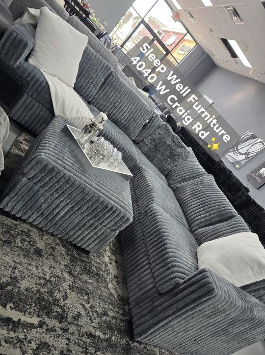 Cozy style sectional Sofa free ottoman 👉👉$799 👉NOW! (Originally $1100) 🙋♂️👉SLEEP WELL FURNITURE 4040 W CRAIG RD LAS VEGAS Open 10-7pm Hablamos Español 👉We offer Financing💲 Take home it Home 👉$50 DOWN No credit required, Zero interest up to 120 days Select from Koalofi, Acima, American First, Progressive finance. Furniture Sectional Sofa Queen King Mattress Bedroom Bunk beds Dining table sets