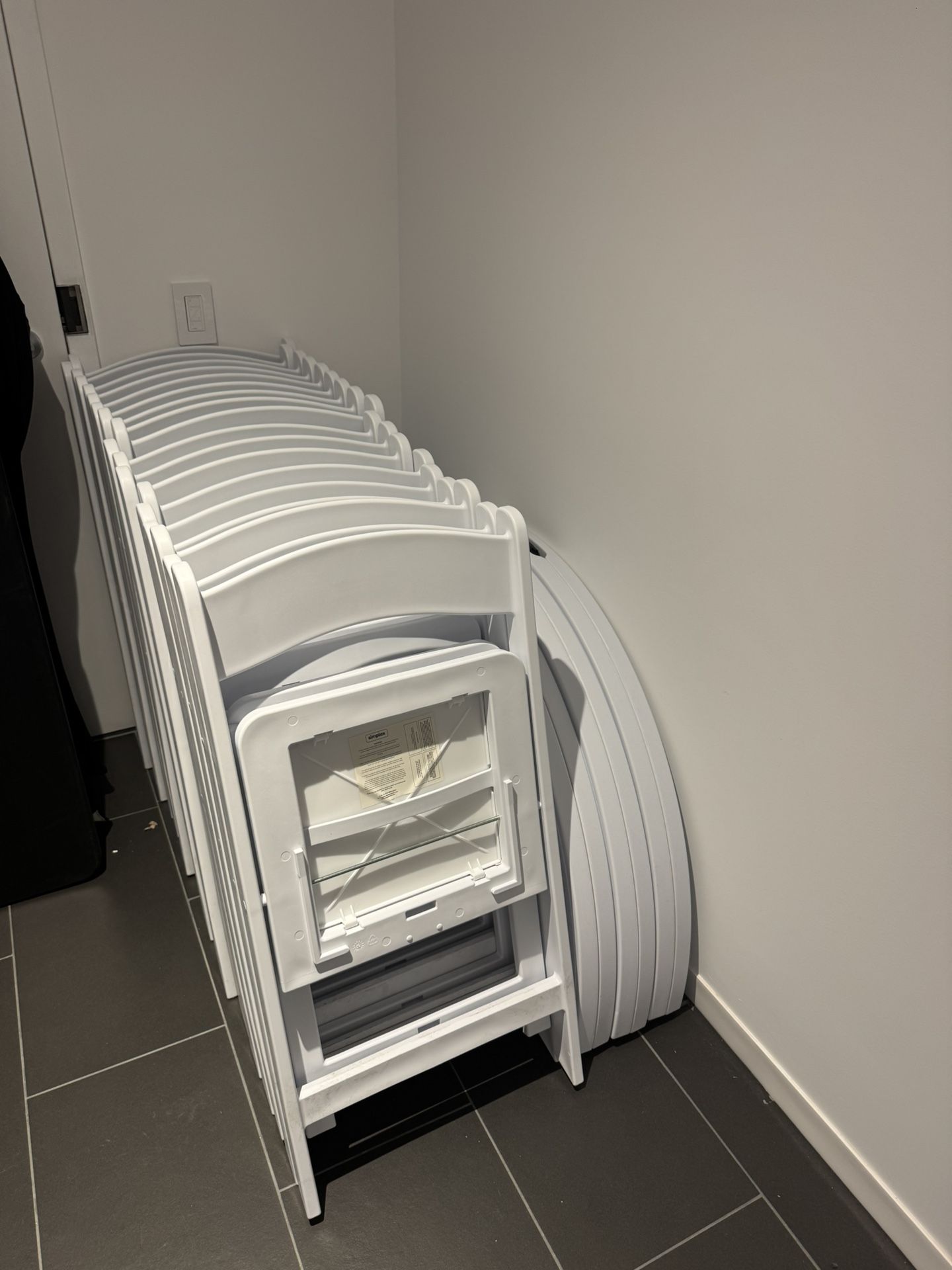 24 x White Folding Chairs (16 opened, 8 still in it’s box) 3 x 4ft folding tables PICK UP ONLY Mondays or Friday