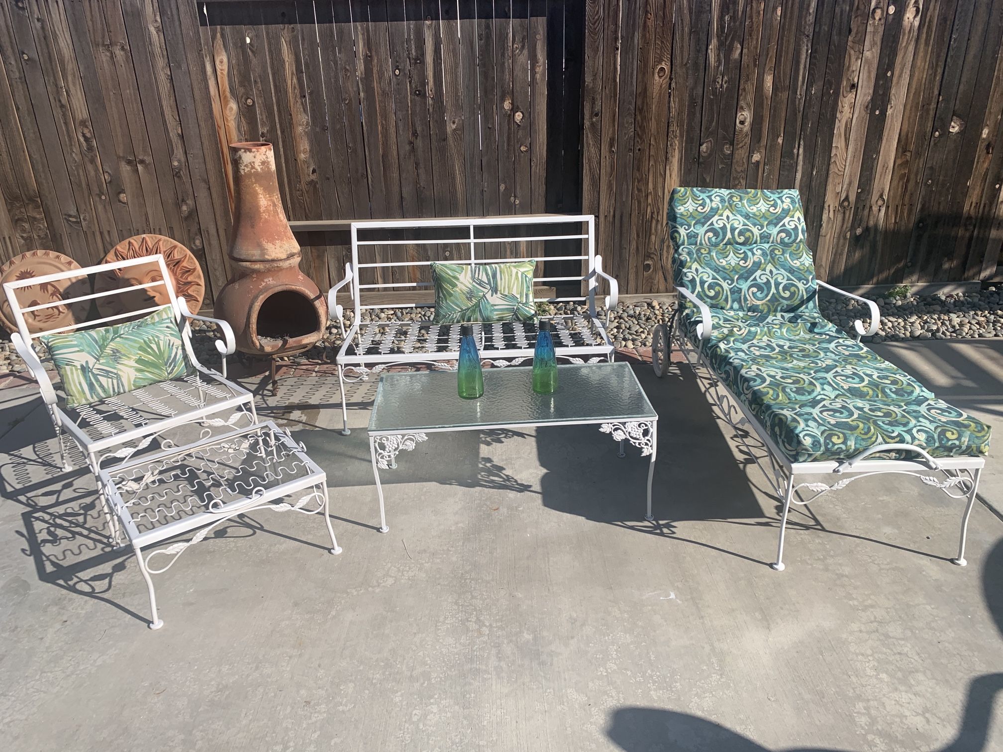 Vintage Wrought Iron Patio Furniture 4 Pieces IVY Pattern Center Table Grape Pattern (3 foot) 4 piece $250 Table $50 Cushions not included