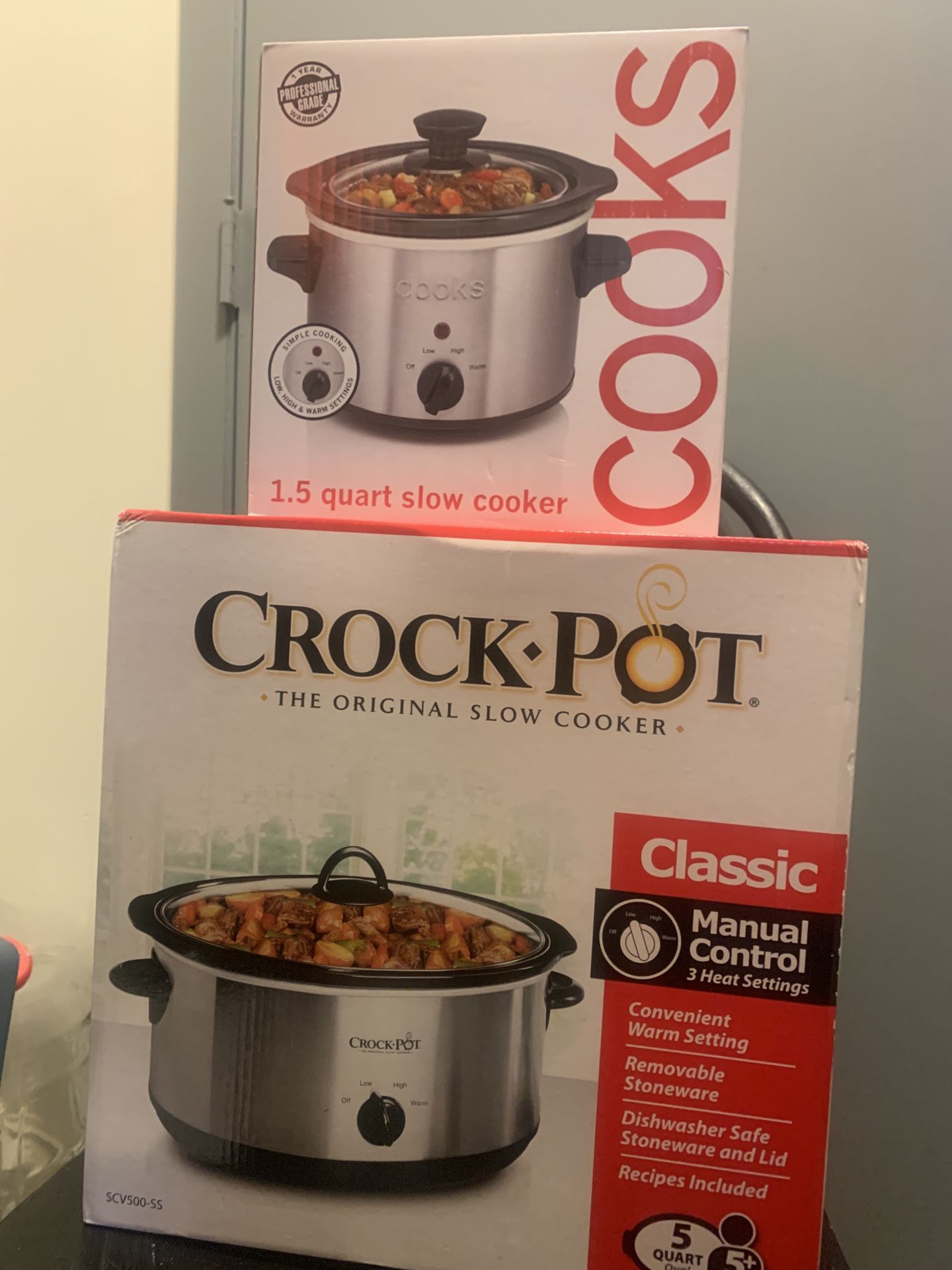 Crock pots, brand new in the box 1.5 quart slow cooker, cooks and original crockpot slow cooker 5 quarts oval, comes with brand stainless steel baster, brand new in box, $50 for both, painesville OH