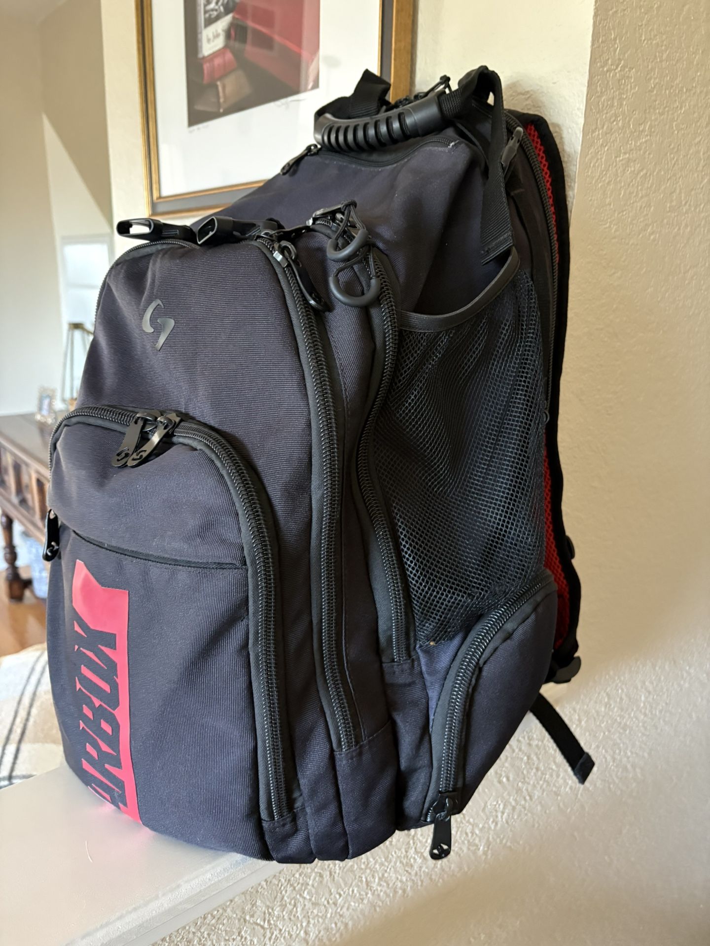 Large used Gearbox pickleball bag. Holds loads of stuff, pockets for days, including for a pair of shoes.