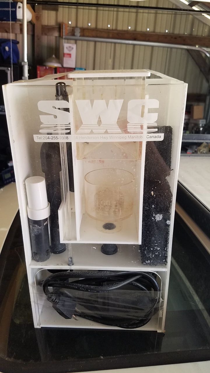 Hang on type skimmer for up to 90 gal tank.very reliable bare need to change water PH stays good for about a month .