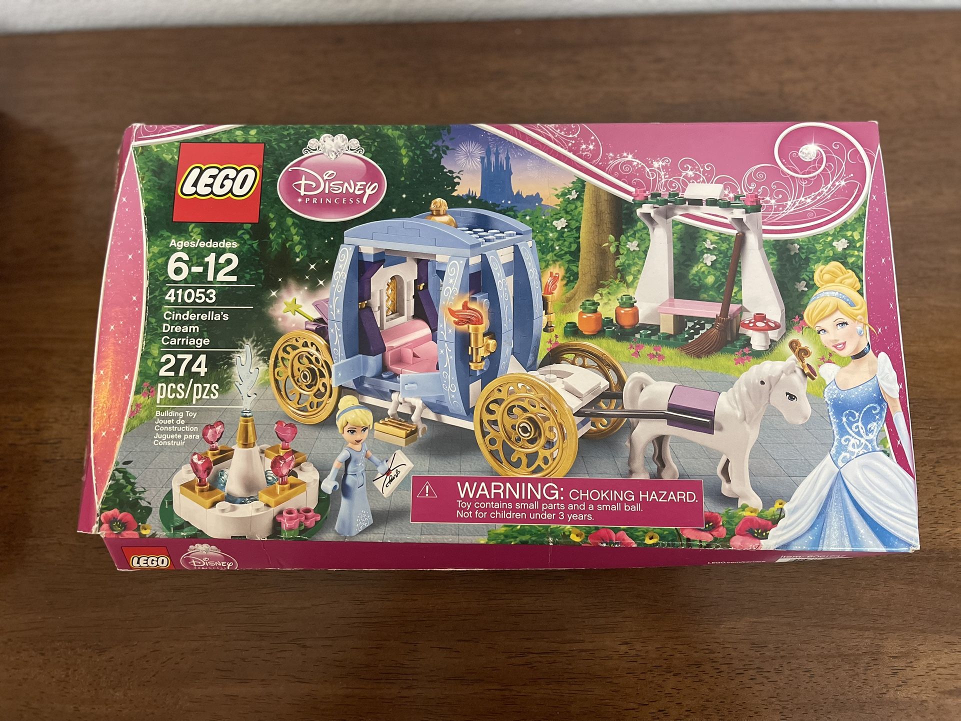 Lego is in a perfect condition. The package is only damaged. Features & details Includes Cinderella mini-doll figure and a white horse, a flower gazebo with pumpkin patch and a fountain with translucent water element Features turning golden wheels, opening doors, unfolding steps and a removable roof Accessories include an invitation to the ball, magic wand, broom, flowers and a golden head decoration for the horse Cinderella's Dream Carriage measures over 3" (10cm) high, 7" (19cm) long and 1" (5cm) wide