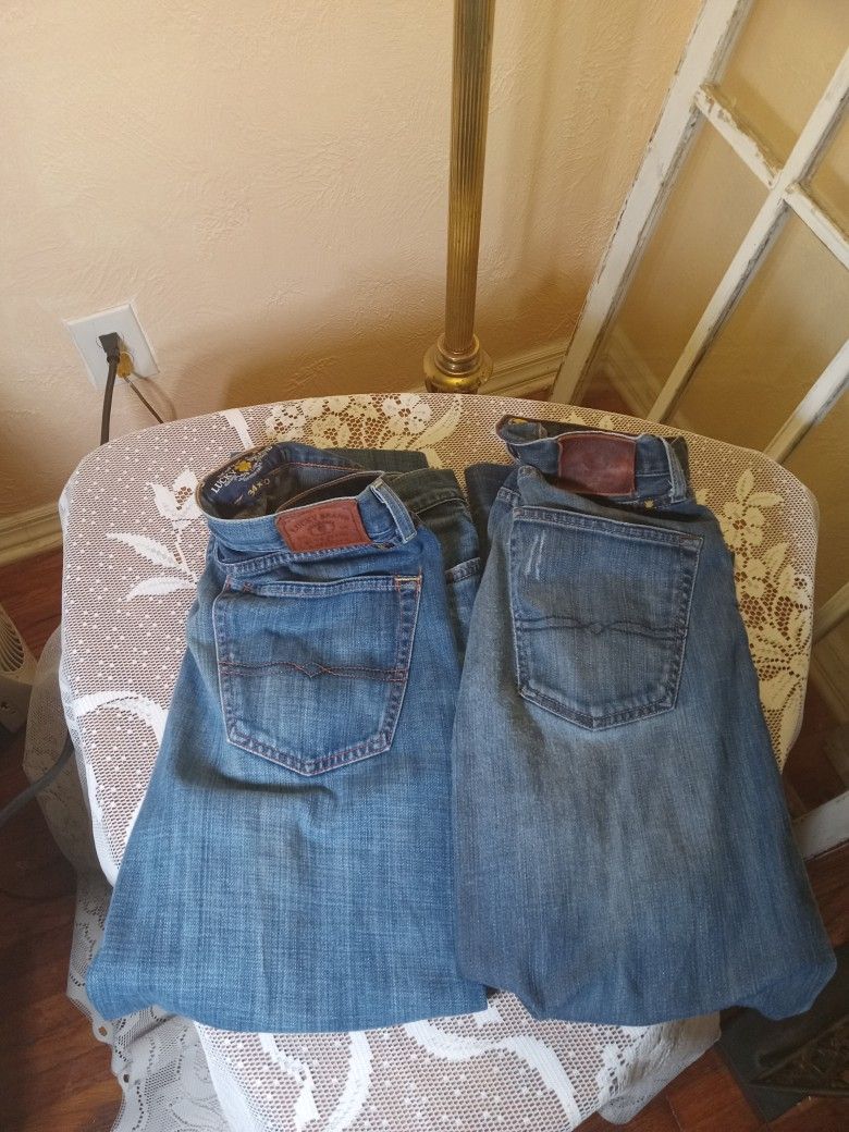 2 Pair Of Lucky Brand Blue Jeans 361 Vtg Straight S 34x30 227 Slim Boot 34x32