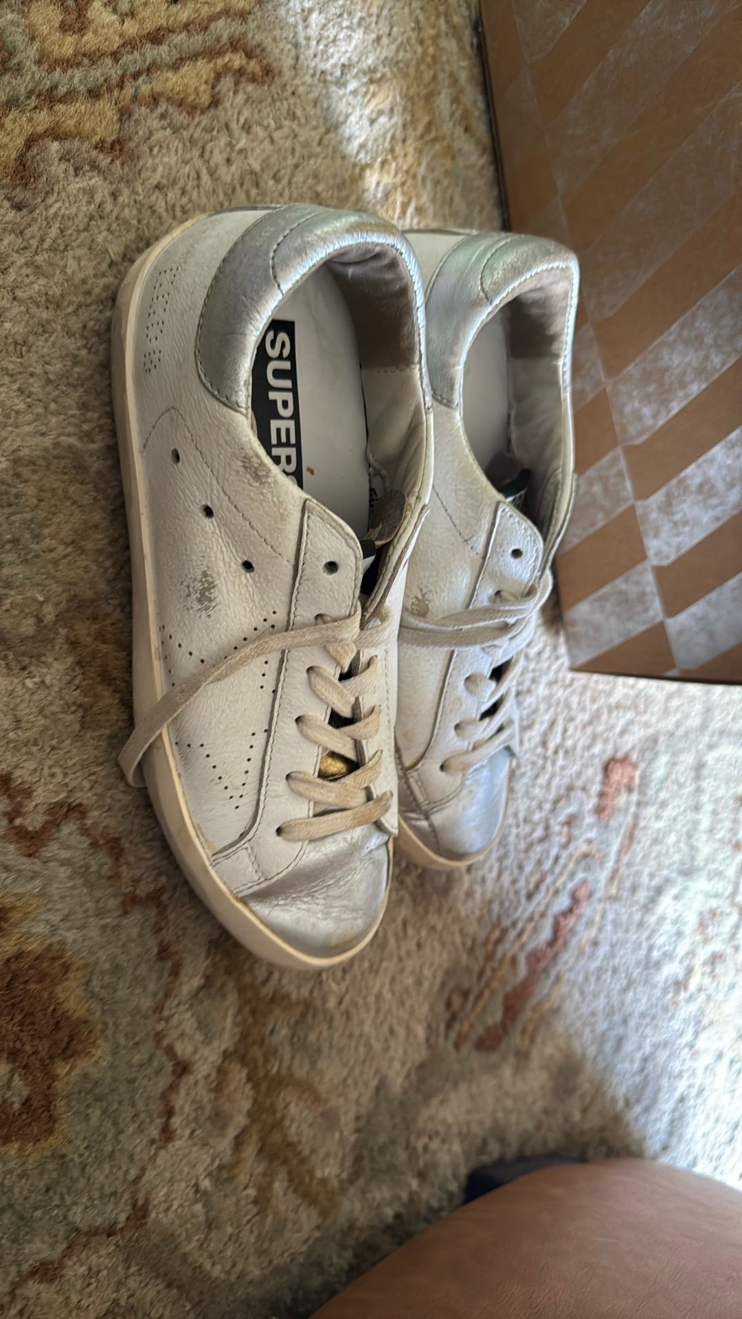 Golden Goose Superstar Sneakers – White/Silver – Women’s Size 35 (US 5B)