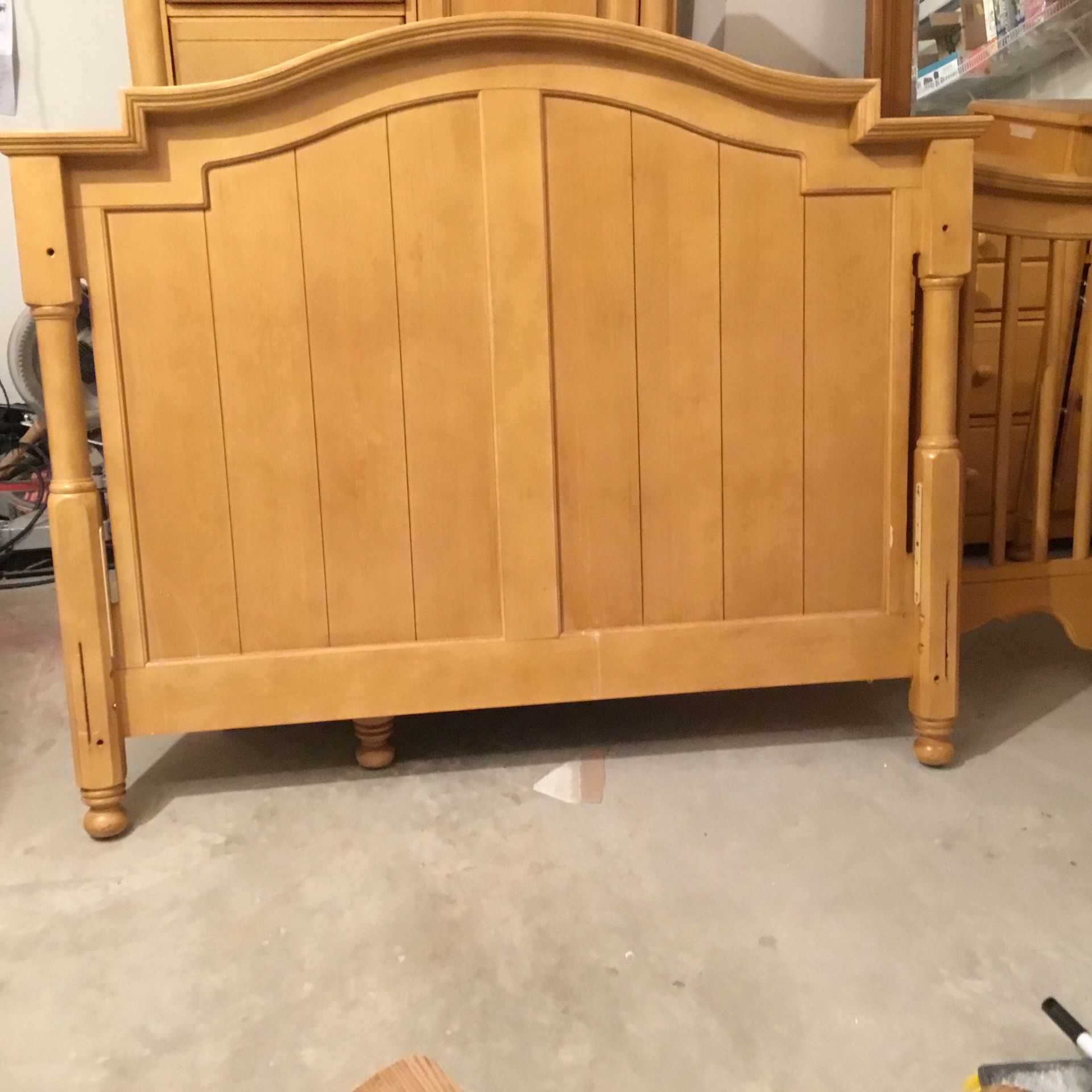 A complete baby bedroom set made of wood and still looks good. The bed goes from a crib , to toddler to big kid bedroom set. It has bed rails, headboard ,footboard, chest, dresser and changing table. You will have to purchase the mattress. It is again for pick up......Only serious inquires Please and Thank you MUST PICK UP No shipping