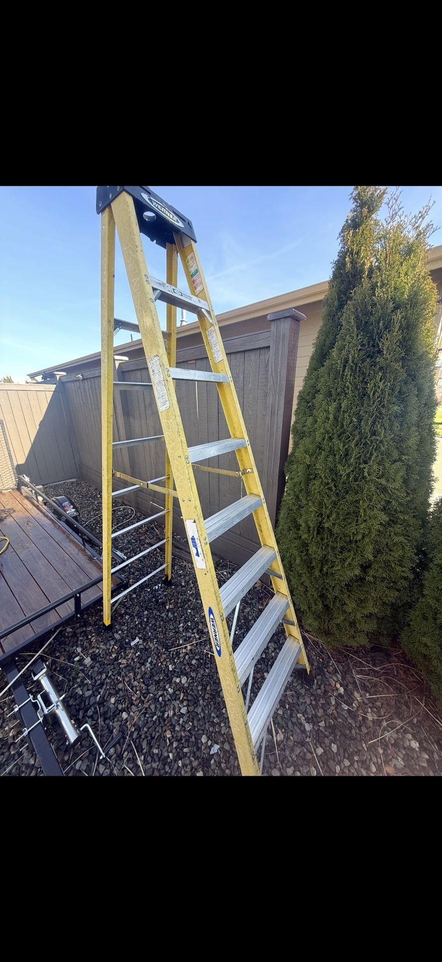 Title: Werner 8’ Fiberglass Step Ladder Description: 8 foot Werner fiberglass step ladder in good working condition. Sturdy and solid, normal cosmetic wear from use but fully functional. $85