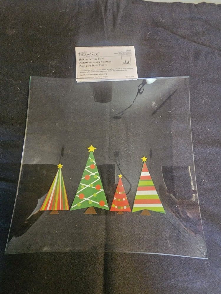whimsical Christmas tree serving plate set out as demos at a couple of parties, but never used perfect size for serving appetizers or desserts makes a great gift dishwasher and microwave safe other patterns available, check our store